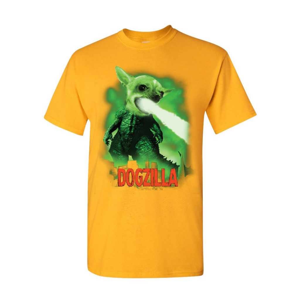 DOGZILLA FUNNY t-shirt movie parody dog pet lovers atomic breath mens tee shirt yellow