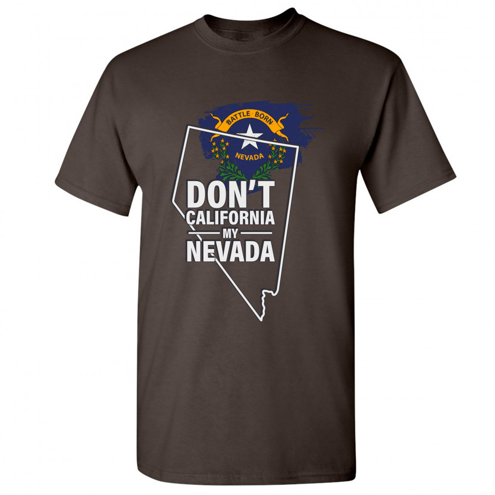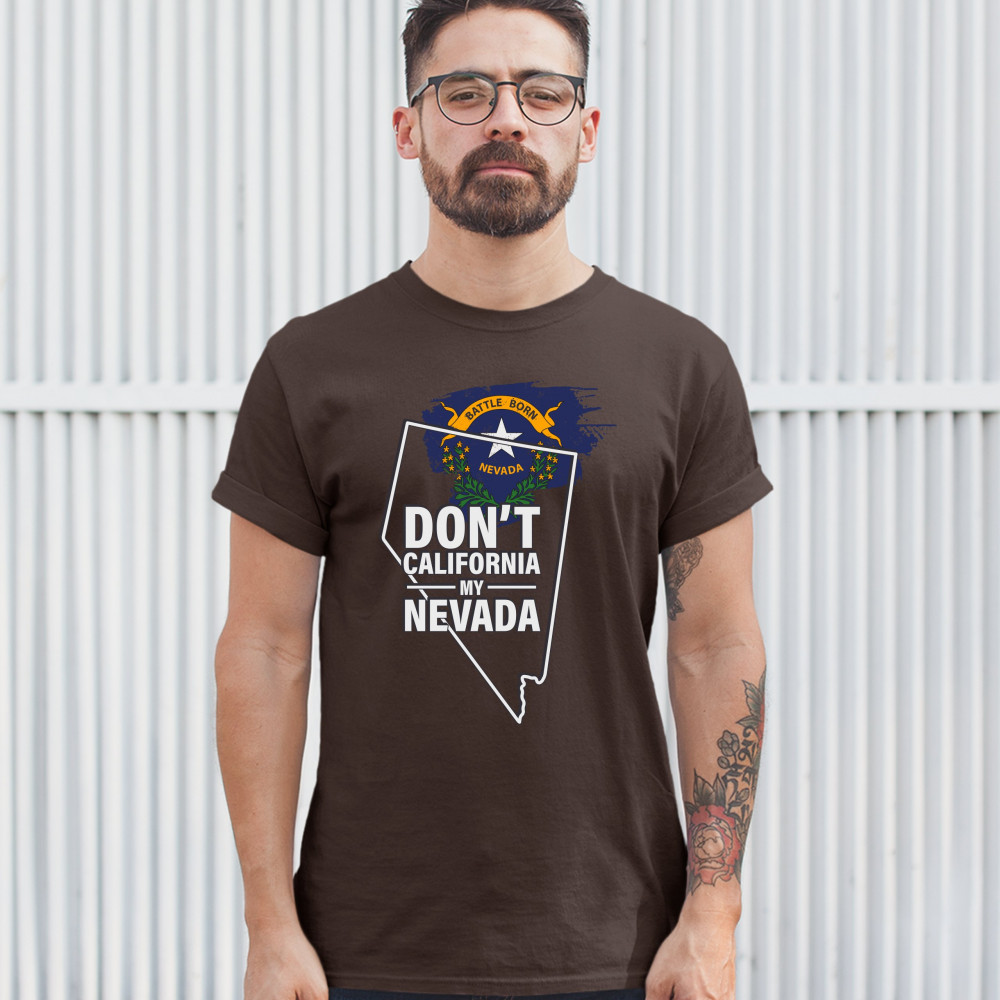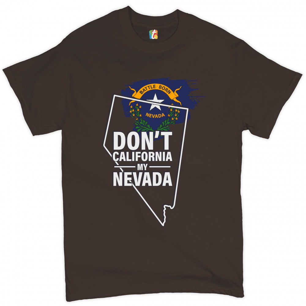 A political print featuring a silhouette of the state of Nevada and it's flag on the inside. The print says: "Don't California my Nevada". A great choice for anyone who is concerned for a huge number of Californians moving to their beloved state.