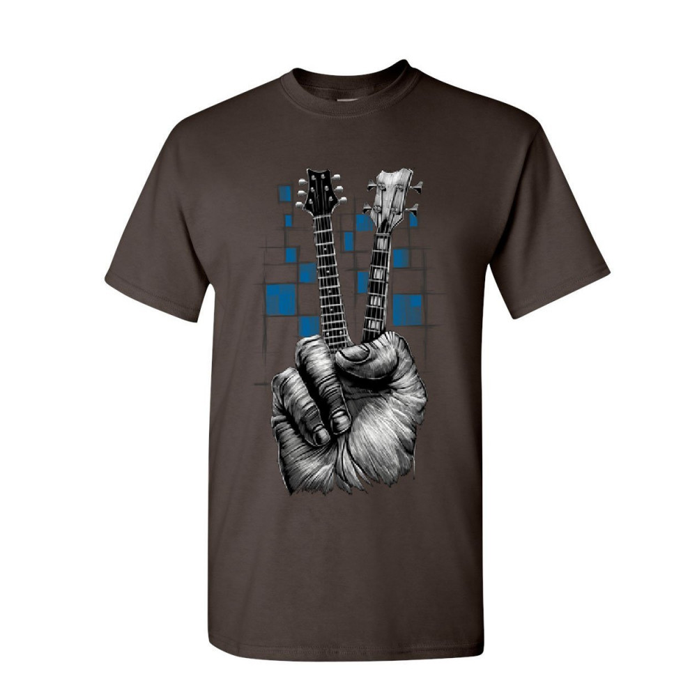 DON'T FRET GUITAR t-shirt rock & roll musician peace sign music mens tee shirt brown
