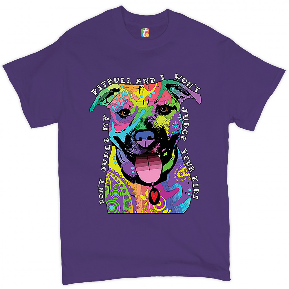 DON'T JUDGE MY PIT BULL t-shirt funny andy maxx dog lover pet owner men's tee purple