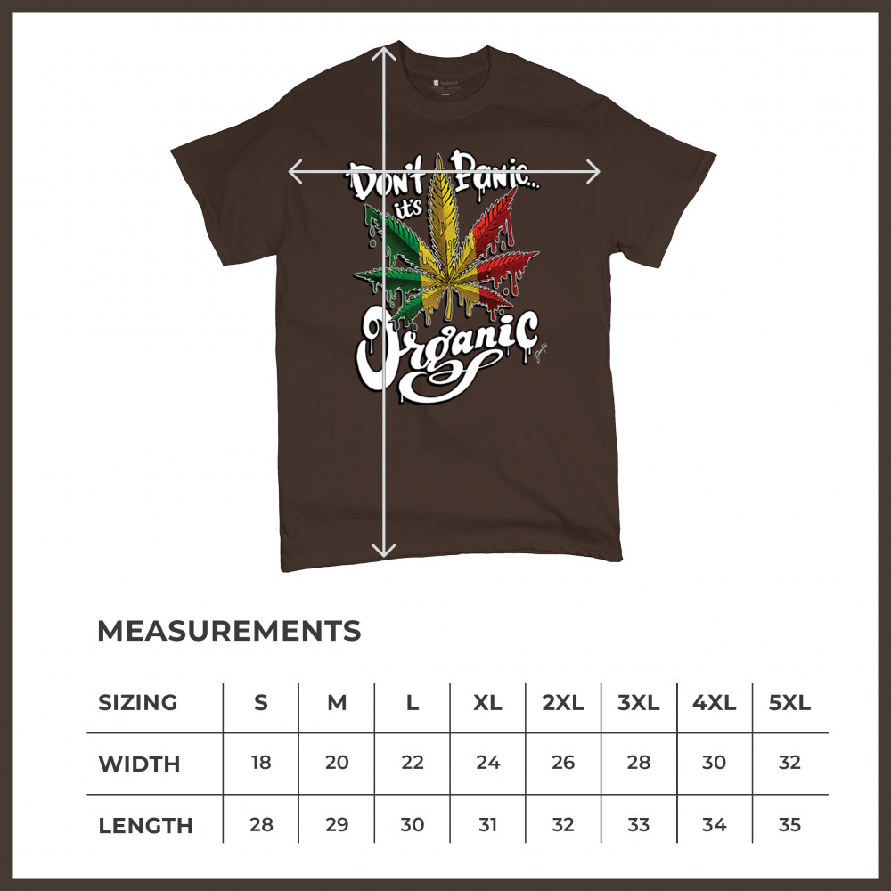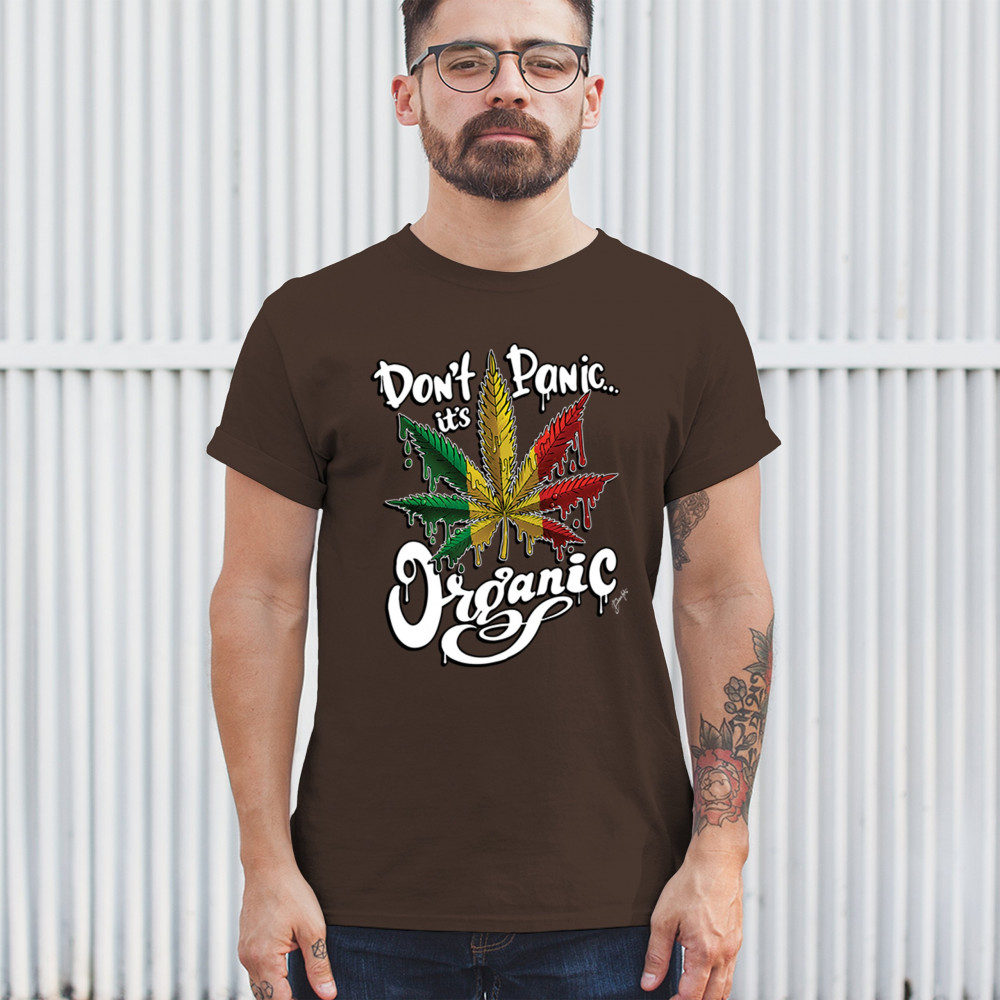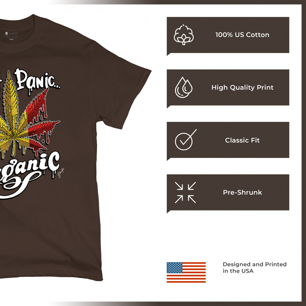 Stay cool and collected with our "Don't Panic...It's Organic" tee. Perfect for those who love life au naturel. It's more than a shirt—it's a lifestyle!