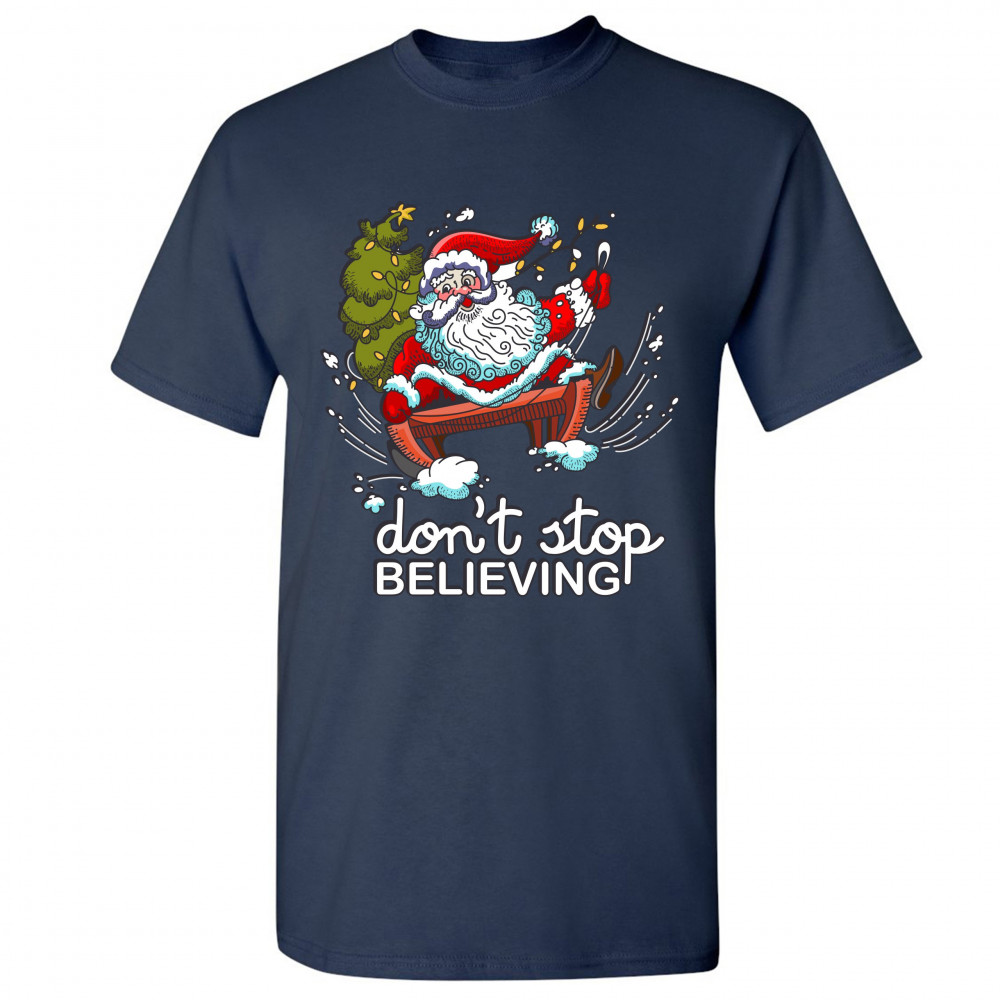 DON'T STOP BELIEVING t-shirt christmas holiday spirit santa claus men's tee navy blue