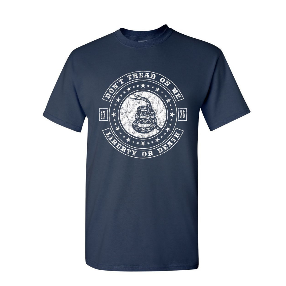 DON'T TREAD ON ME LIBERTY OR DEATH don't tread on me t-shirt liberty or death gadsden rattlesnake mens tee shirt navy blue