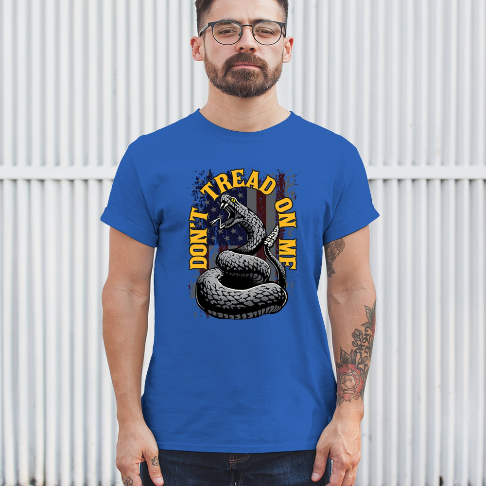 Our "Don't Tread on Me" design is perfect for anyone who values American liberty. Featuring a coiled snake against the backdrop of the American flag, this design is both striking and symbolic. Ideal for Independence Day, political events, or everyday wear, it's crafted from premium materials for comfort and durability. Make a bold statement about your commitment to freedom and independence with this powerful design. A perfect addition to any patriotic wardrobe.