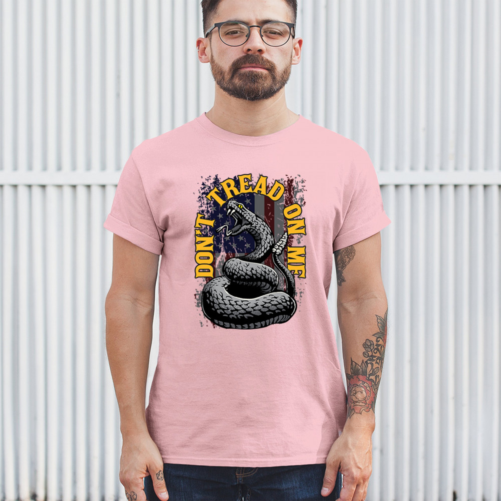 Our "Don't Tread on Me" design is perfect for anyone who values American liberty. Featuring a coiled snake against the backdrop of the American flag, this design is both striking and symbolic. Ideal for Independence Day, political events, or everyday wear, it's crafted from premium materials for comfort and durability. Make a bold statement about your commitment to freedom and independence with this powerful design. A perfect addition to any patriotic wardrobe.