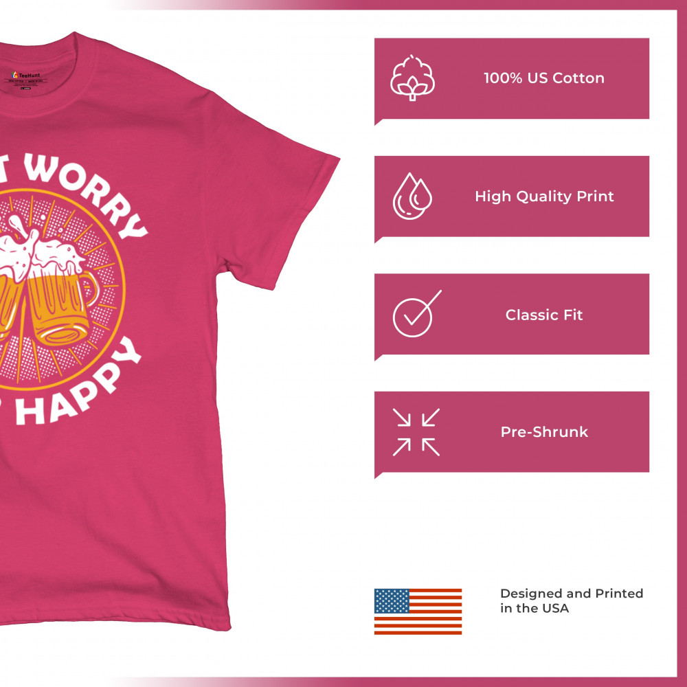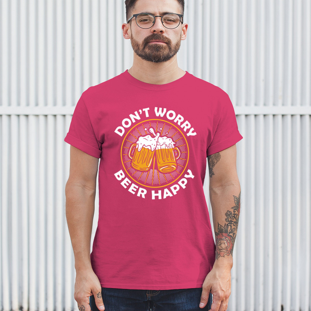 Spread joy with the "Don't Worry, Beer Happy" design, perfect for beer lovers. Ideal for casual outings and social gatherings.