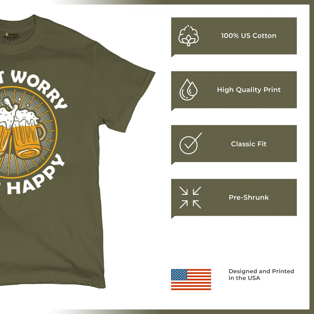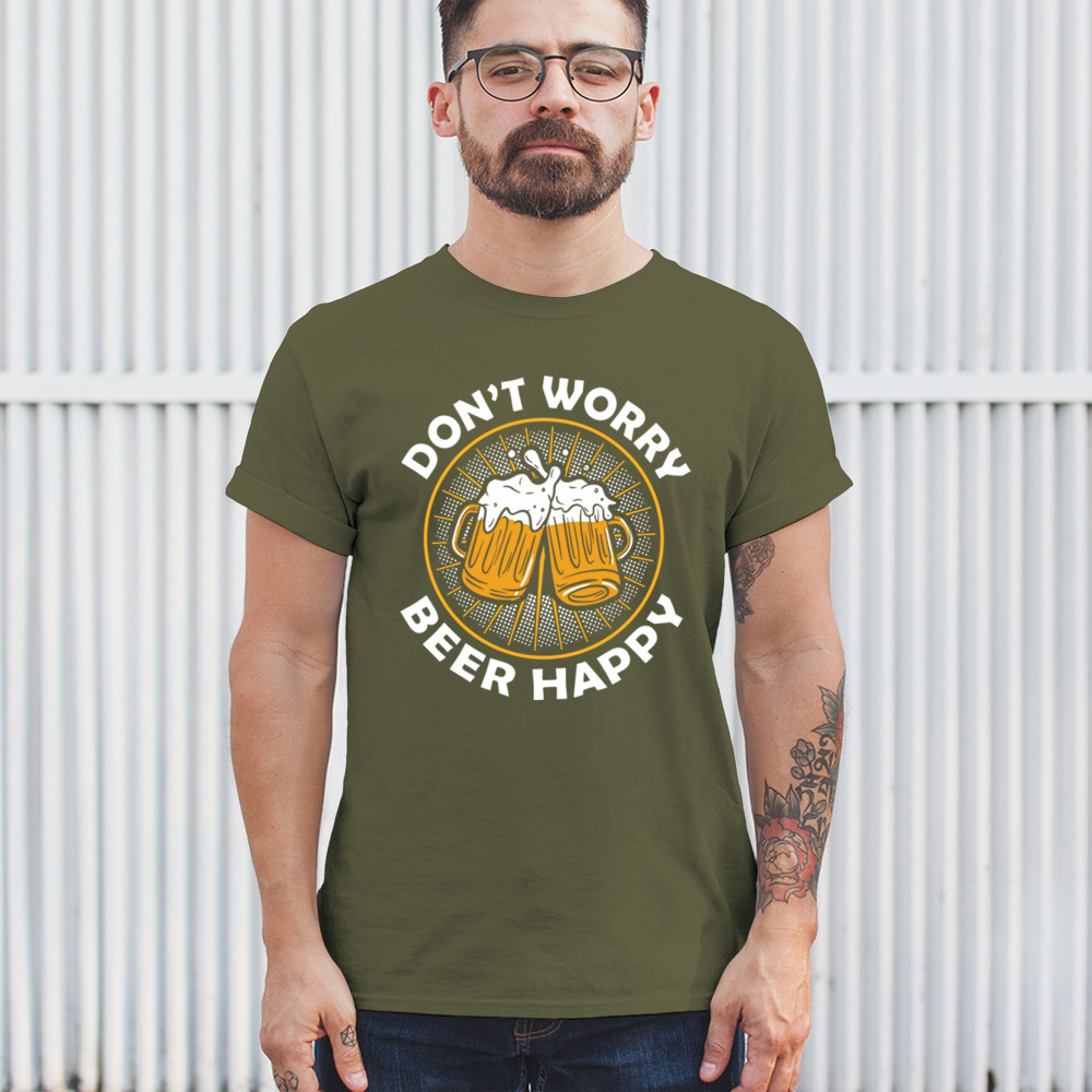 Spread joy with the "Don't Worry, Beer Happy" design, perfect for beer lovers. Ideal for casual outings and social gatherings.