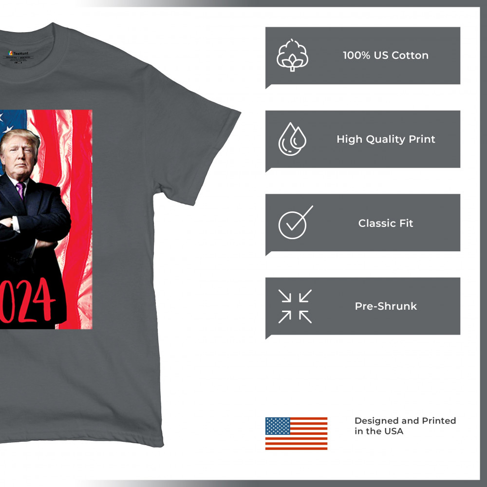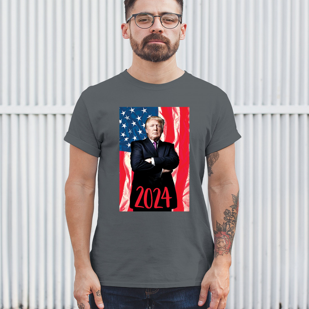 Stand proud with our Donald Trump 2024 design, a bold statement for America's future. Perfect for patriots and conservatives who champion victory, trust, and unity. Join the movement.