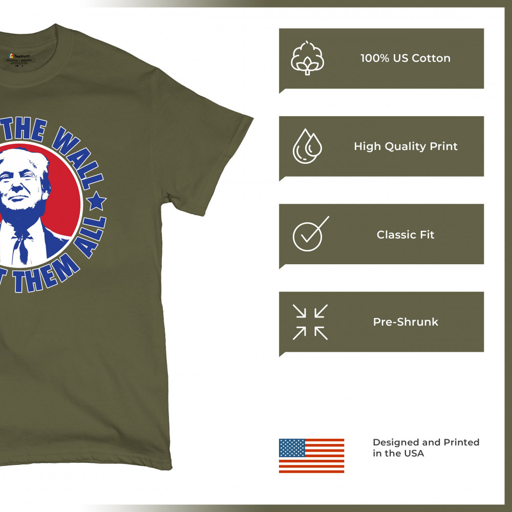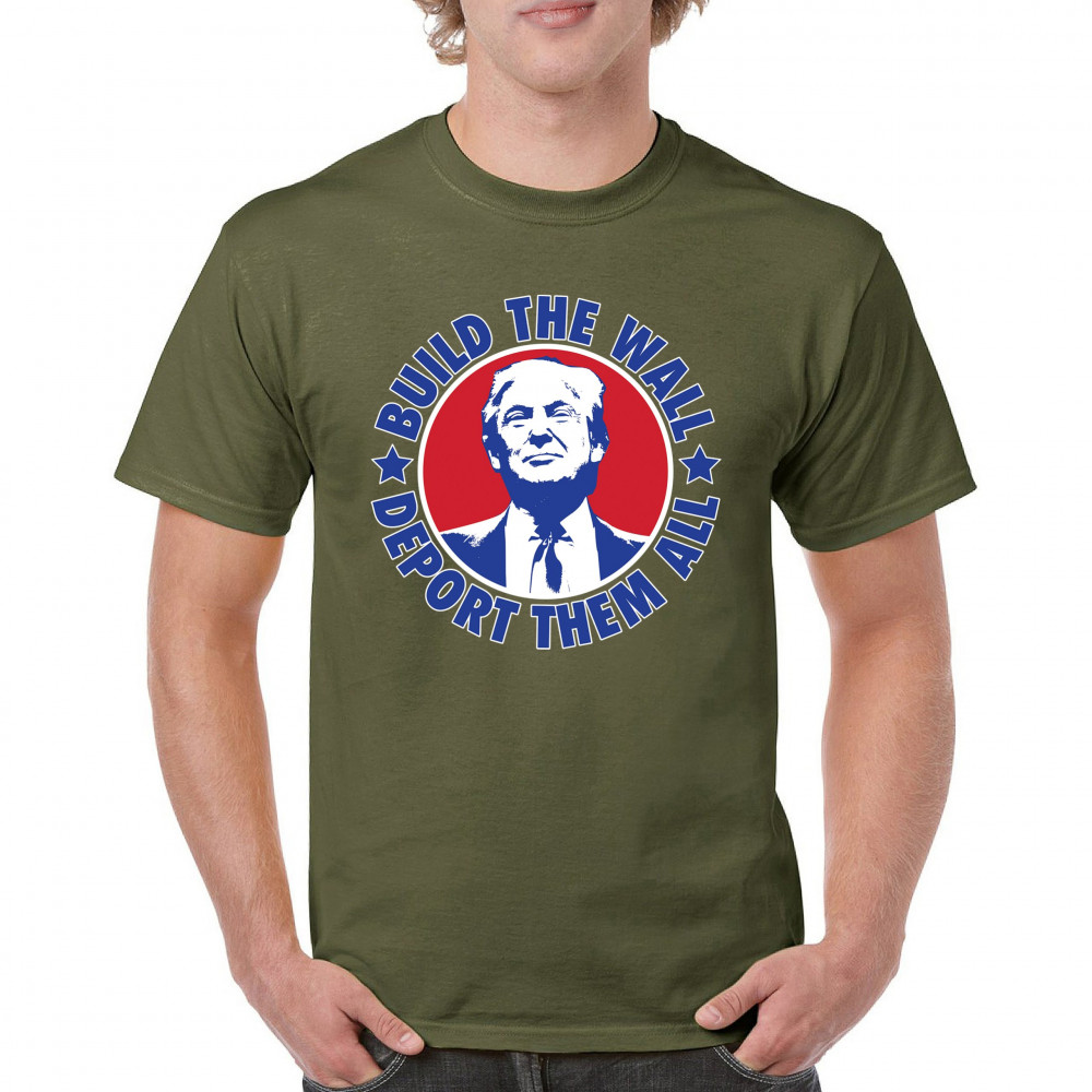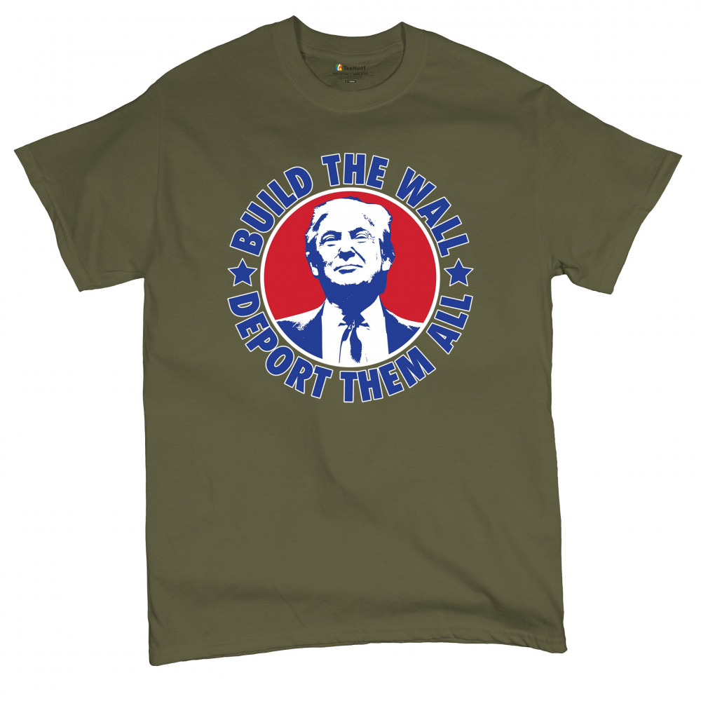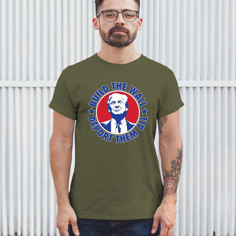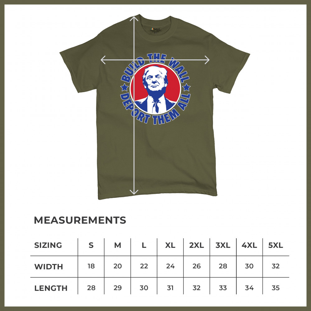 Showcase your unwavering support with a bold design that champions America first. Featuring the "Build the Wall Deport Them All Trump 2024" message, this piece is a must-have for conservatives, symbolizing trust in God over government, and a commitment to never surrender. Adorned with the American flag and a call to rebelution, it's perfect for any Trump supporter ready to stand against the tide.