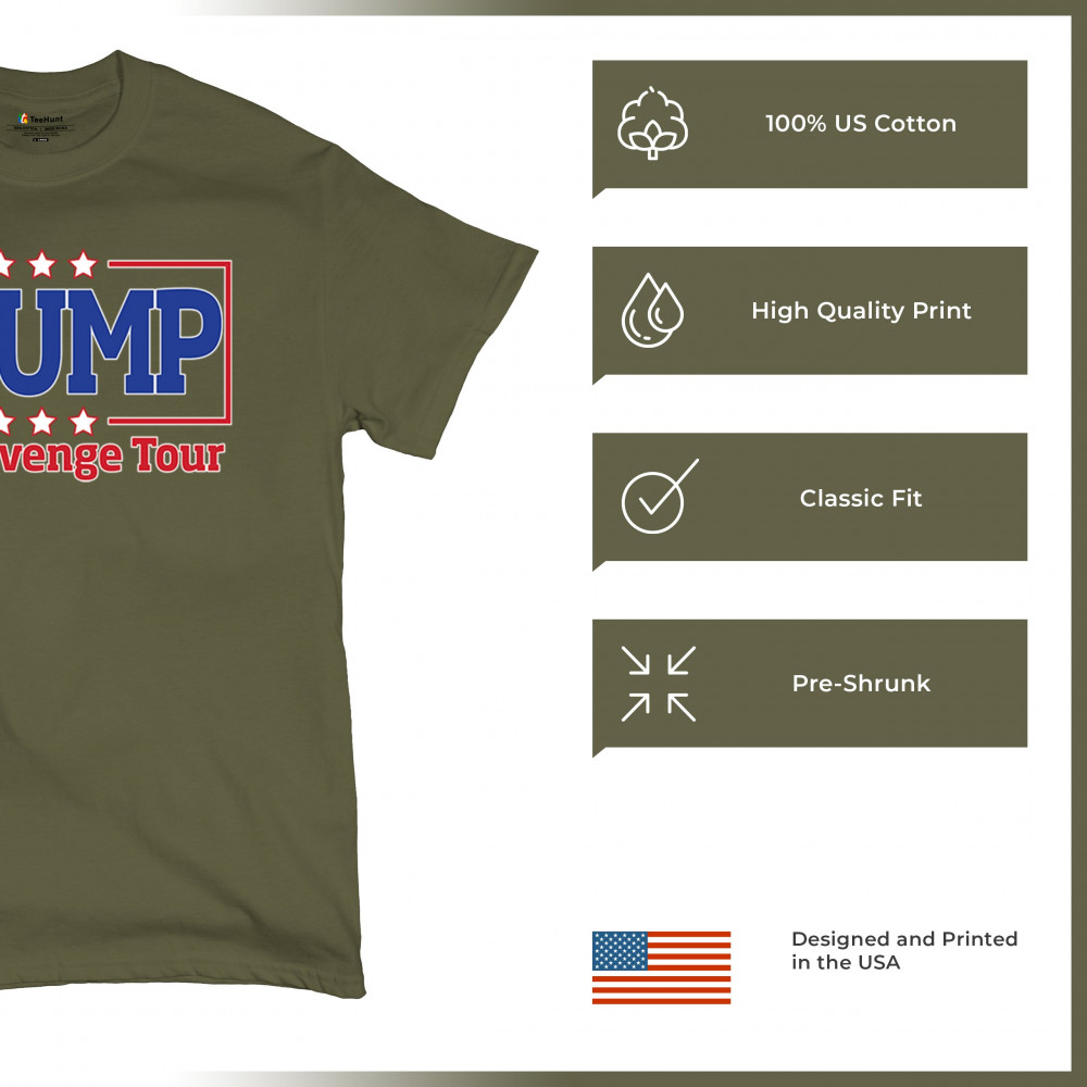 Wear your allegiance to America and President Trump with our conservative-themed tee. As a Trump supporter, hop aboard the Trump Train to victory, advocating for Republican values and putting America first. Featuring the American flag, this tee symbolizes