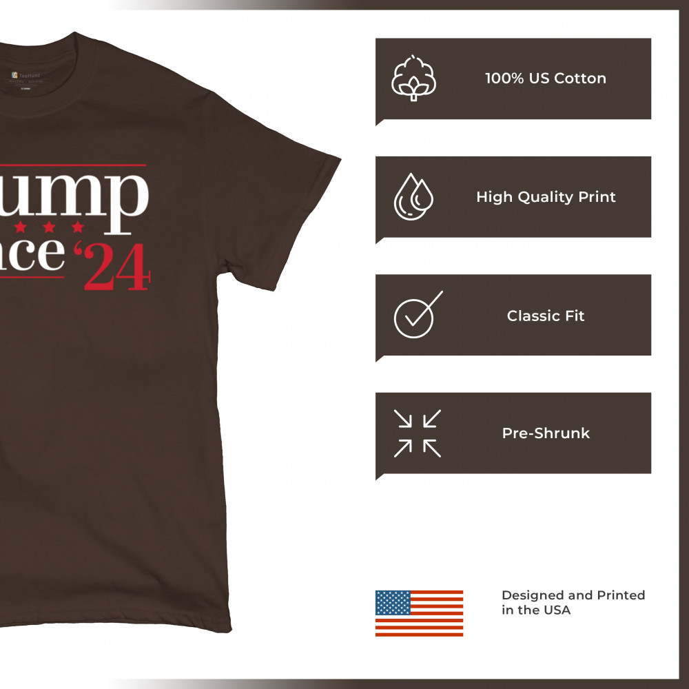 Support Trump-Vance 2024 with this bold design featuring the "Make America Great Again" slogan and the American flag. Perfect for rallies and conservative events.
