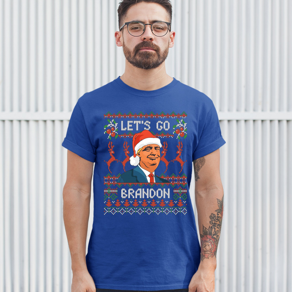 DONALD TRUMP LET'S GO BRANDON t-shirt christmas xmas ugly sweater men's tee royal blue