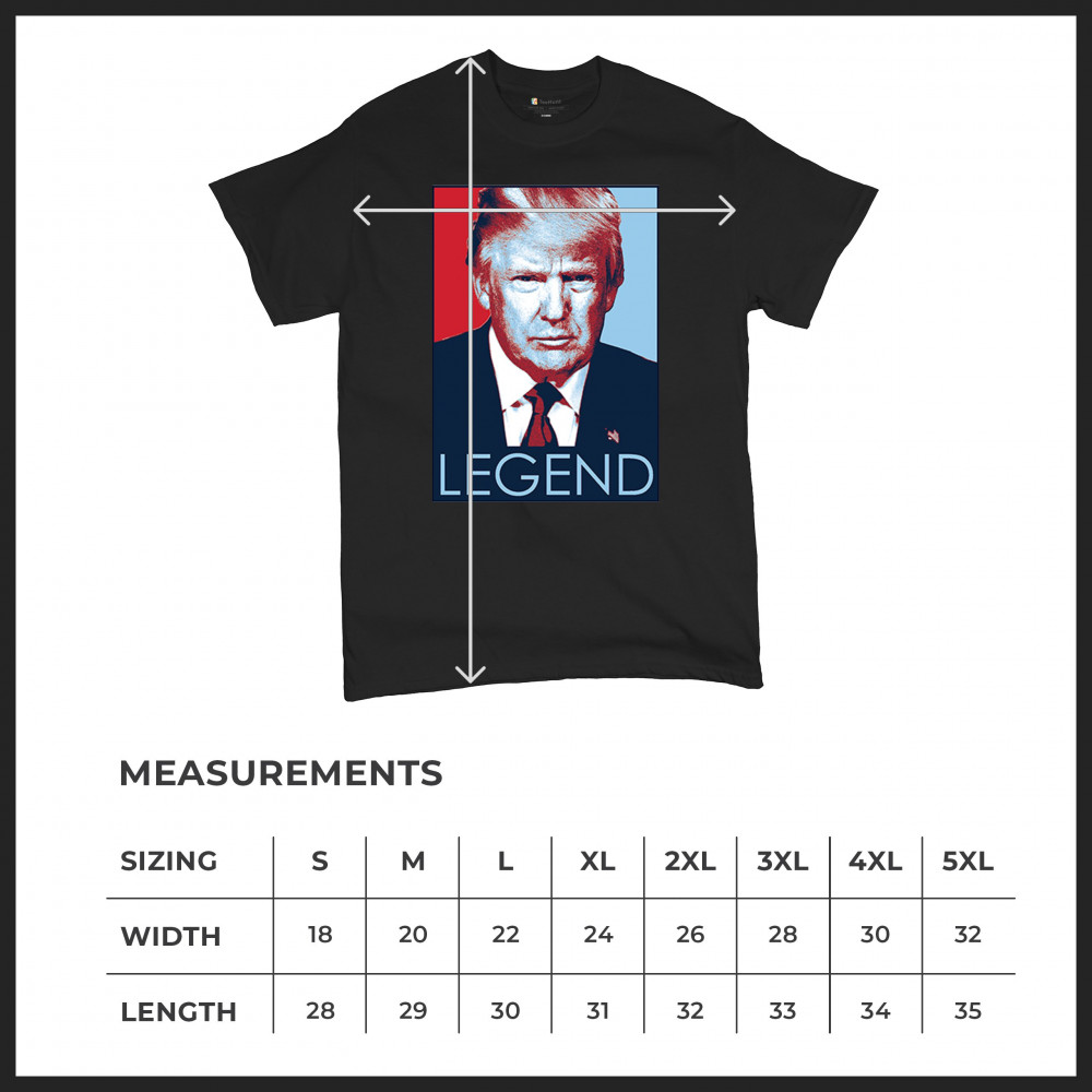 Embrace the legend with our striking design showcasing Donald Trump in a bold pose, surrounded by the vibrant hues of red, white, and blue. Perfect for conservatives and proud supporters, it captures the essence of America first and victory. Stand tall with Trump and proudly display your unwavering support for our nation's legendary leader. Let your apparel make a bold statement.