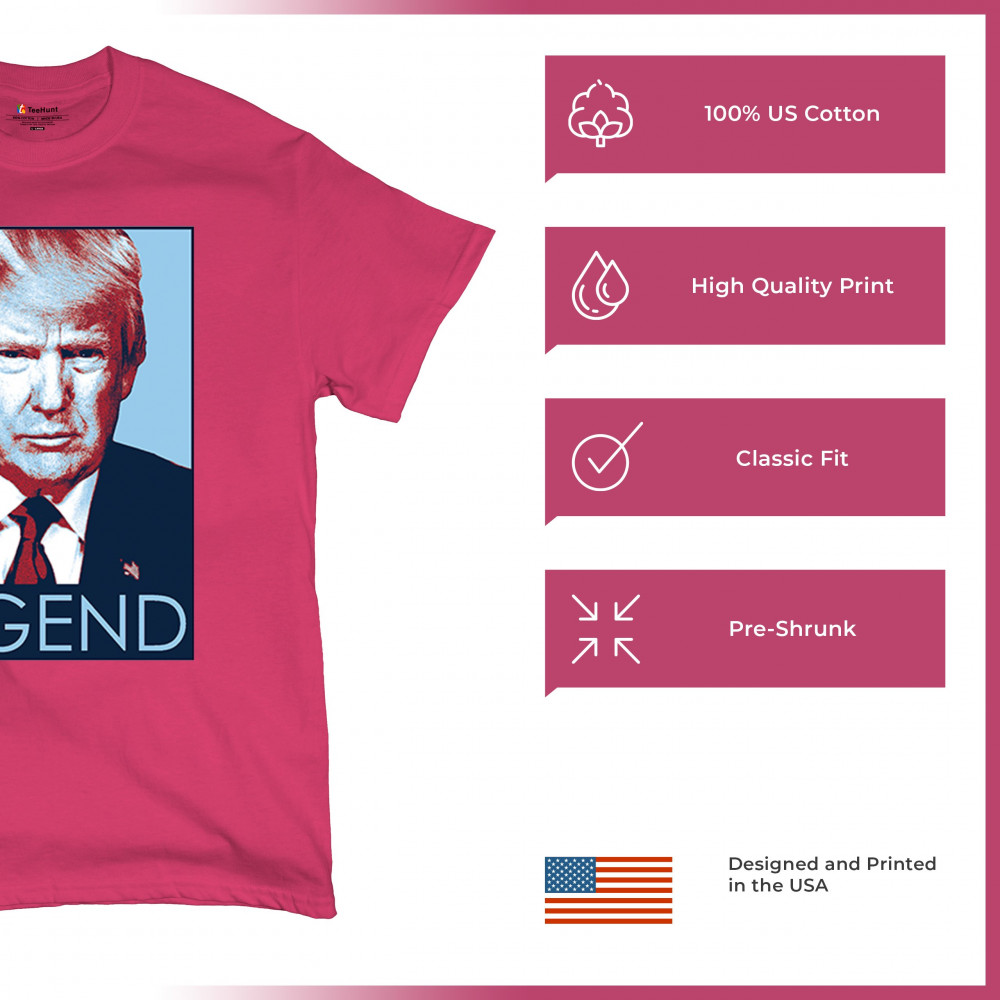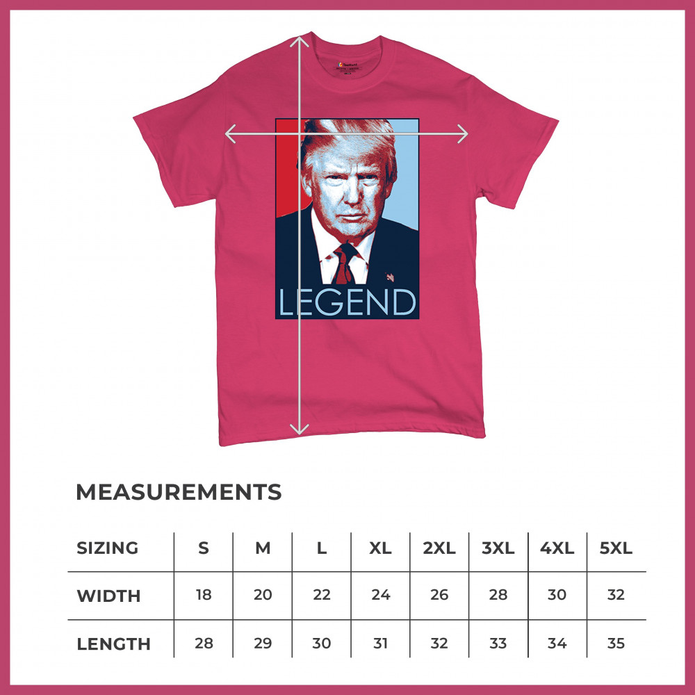 Embrace the legend with our striking design showcasing Donald Trump in a bold pose, surrounded by the vibrant hues of red, white, and blue. Perfect for conservatives and proud supporters, it captures the essence of America first and victory. Stand tall with Trump and proudly display your unwavering support for our nation's legendary leader. Let your apparel make a bold statement.