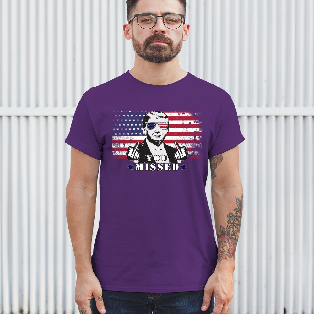 Embrace the spirit of patriotism and resilience with this powerful design showcasing Donald Trump in bold American flag sunglasses. Ideal for Trump rallies, political gatherings, and other patriotic events, this graphic is perfect for conservatives and Republicans alike. Show your unwavering support for Trump and the belief in making America great again. This striking design is not only a great addition to your wardrobe but also an excellent gift for fellow supporters. Wear it with pride and join the movement today.