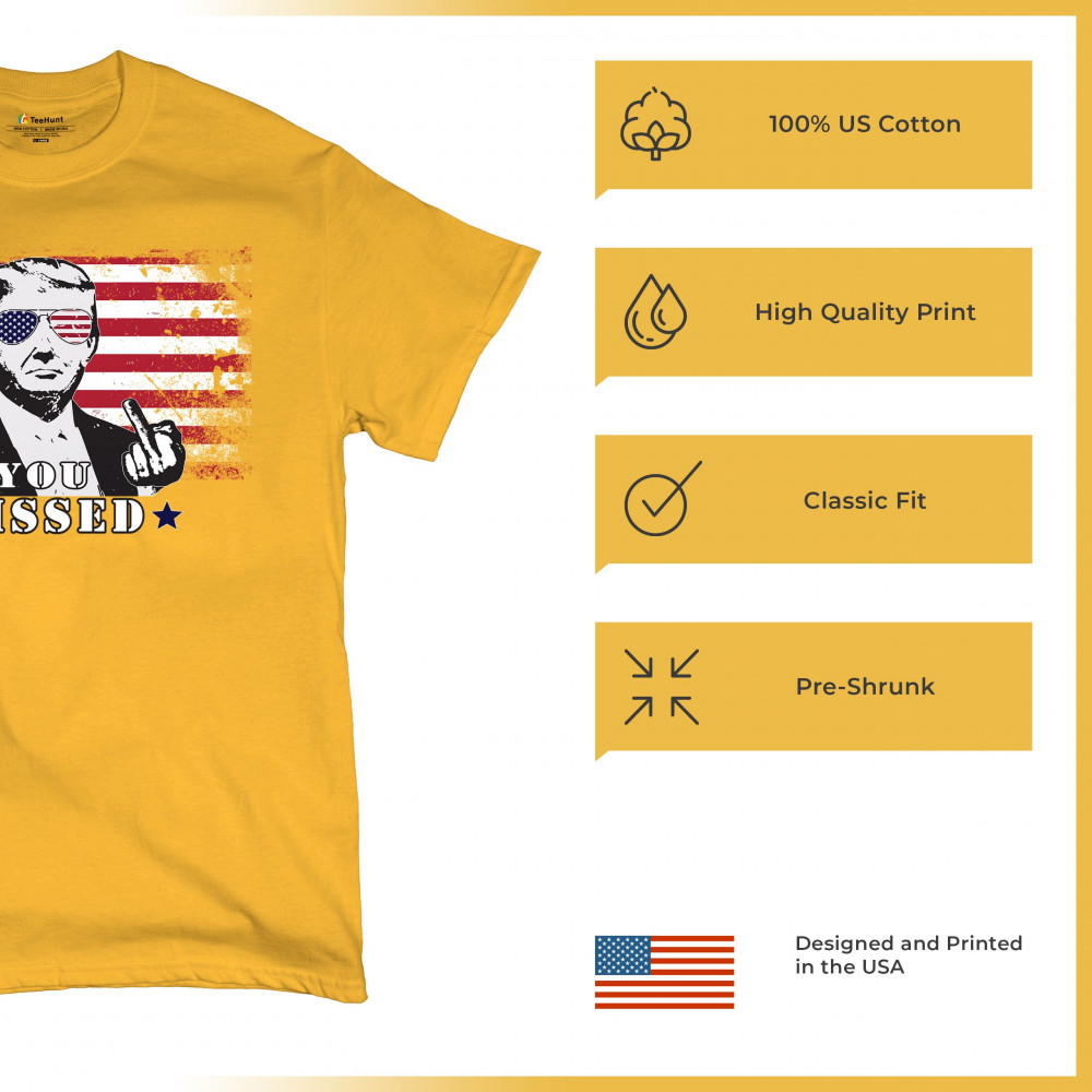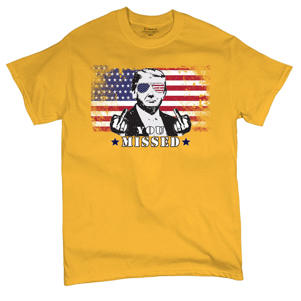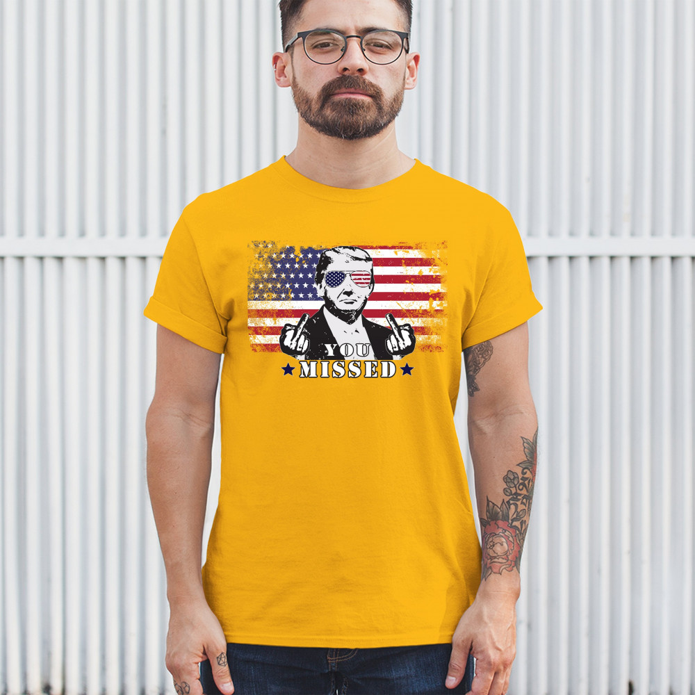 Embrace the spirit of patriotism and resilience with this powerful design showcasing Donald Trump in bold American flag sunglasses. Ideal for Trump rallies, political gatherings, and other patriotic events, this graphic is perfect for conservatives and Republicans alike. Show your unwavering support for Trump and the belief in making America great again. This striking design is not only a great addition to your wardrobe but also an excellent gift for fellow supporters. Wear it with pride and join the movement today.