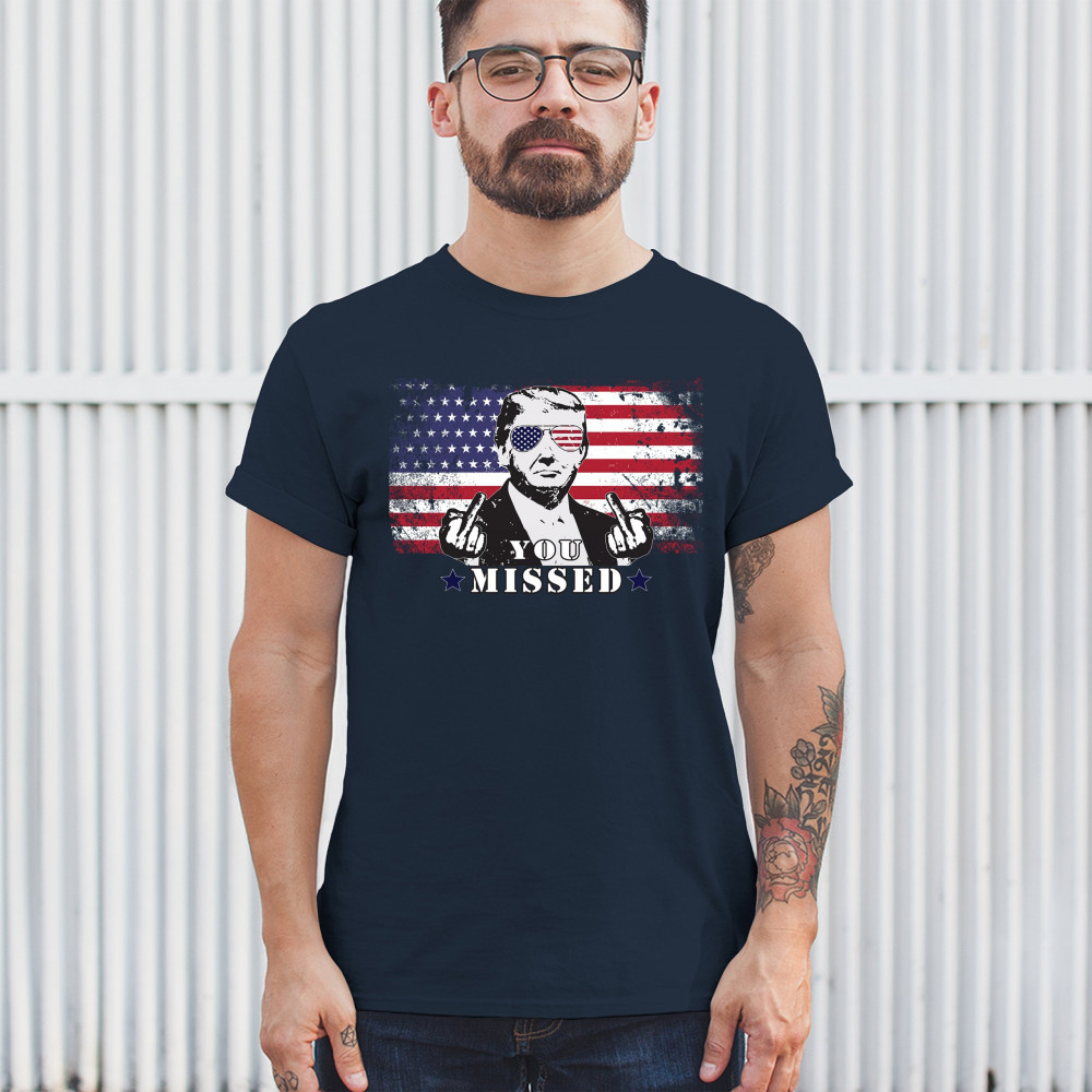 Embrace the spirit of patriotism and resilience with this powerful design showcasing Donald Trump in bold American flag sunglasses. Ideal for Trump rallies, political gatherings, and other patriotic events, this graphic is perfect for conservatives and Republicans alike. Show your unwavering support for Trump and the belief in making America great again. This striking design is not only a great addition to your wardrobe but also an excellent gift for fellow supporters. Wear it with pride and join the movement today.