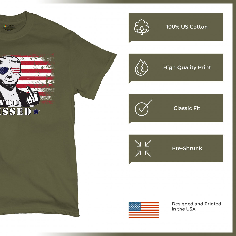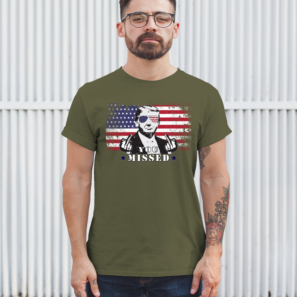 Embrace the spirit of patriotism and resilience with this powerful design showcasing Donald Trump in bold American flag sunglasses. Ideal for Trump rallies, political gatherings, and other patriotic events, this graphic is perfect for conservatives and Republicans alike. Show your unwavering support for Trump and the belief in making America great again. This striking design is not only a great addition to your wardrobe but also an excellent gift for fellow supporters. Wear it with pride and join the movement today.