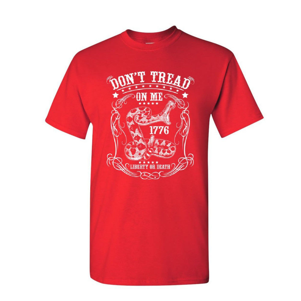 DON'T TREAD ON ME 1776 don't tread on me t-shirt liberty or death gadsden viper snake mens tee shirt red