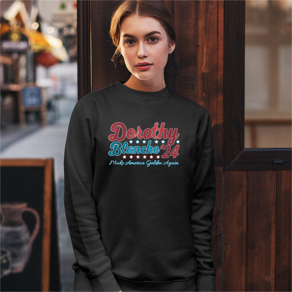 Pay homage to one of television’s most beloved duos with this clever, election-themed design. A perfect blend of humor, nostalgia, and a touch of political satire, it’s ideal for fans of classic TV shows. Whether you’re a die-hard fan of the show or just enjoy witty, playful designs, this piece is sure to make you smile. Wear it to rallies, casual outings, or just around the house to spread some sassy, nostalgic vibes.