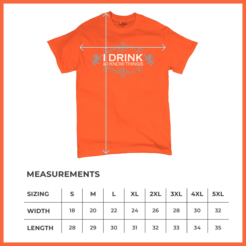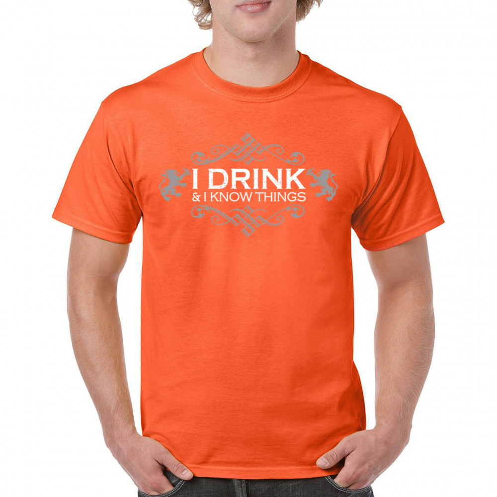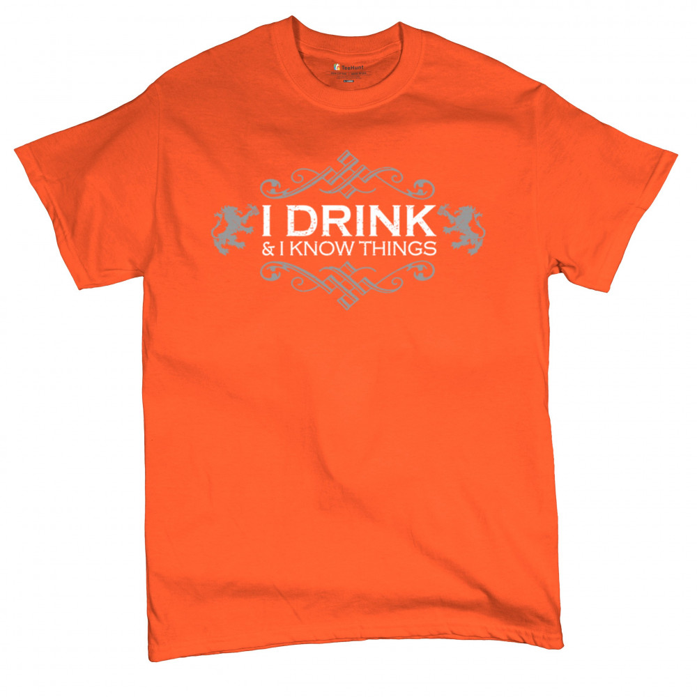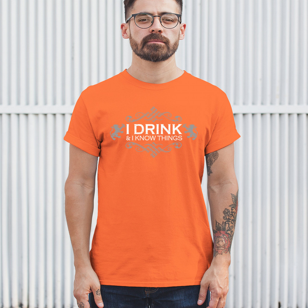 Show off your wit with the “I Drink and I Know Things†design, styled with medieval scrollwork and regal lions. Whether you're holding a pint at the bar, leading trivia night, or binge-watching fantasy series, this bold and funny piece is made for those who love drinking, sarcasm, and clever quotes with timeless flair.