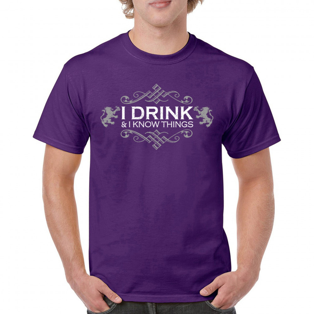 Show off your wit with the “I Drink and I Know Things†design, styled with medieval scrollwork and regal lions. Whether you're holding a pint at the bar, leading trivia night, or binge-watching fantasy series, this bold and funny piece is made for those who love drinking, sarcasm, and clever quotes with timeless flair.