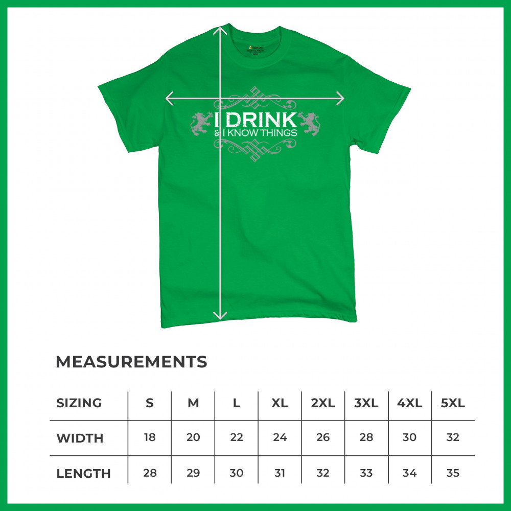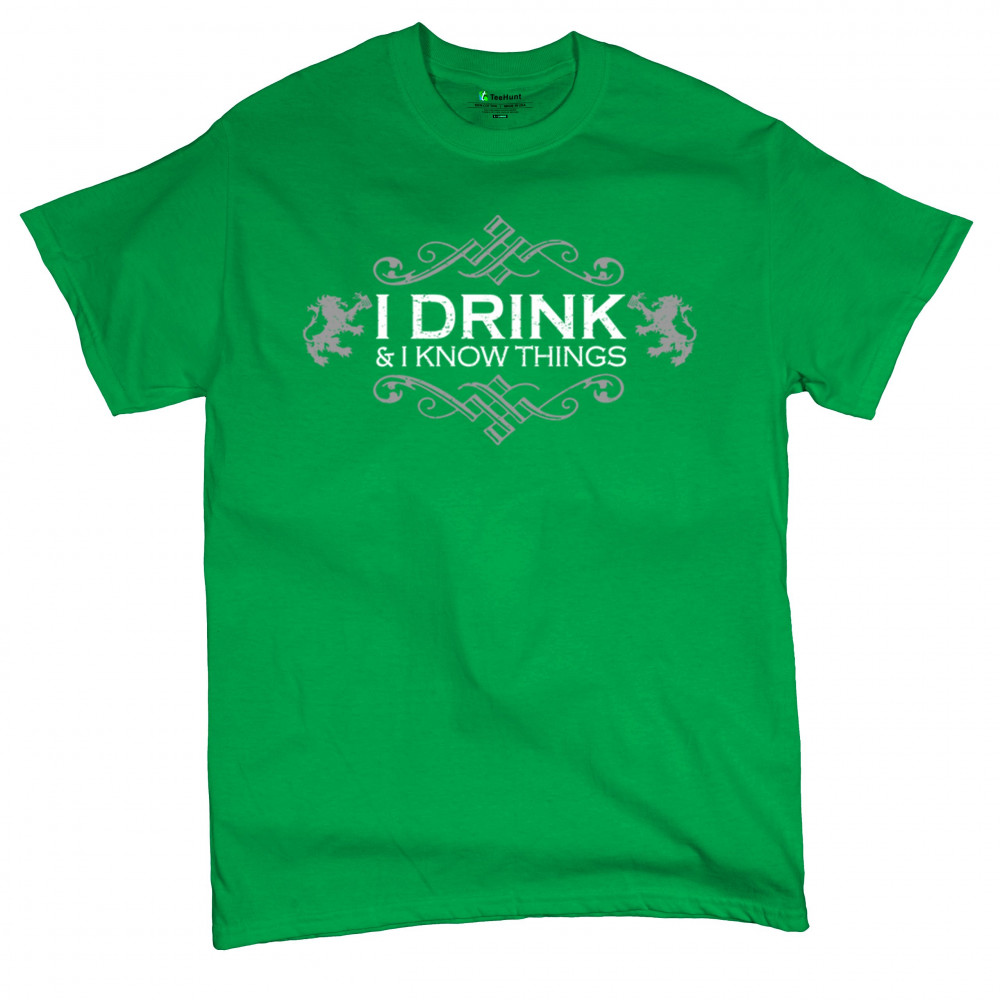 Show off your wit with the “I Drink and I Know Things†design, styled with medieval scrollwork and regal lions. Whether you're holding a pint at the bar, leading trivia night, or binge-watching fantasy series, this bold and funny piece is made for those who love drinking, sarcasm, and clever quotes with timeless flair.