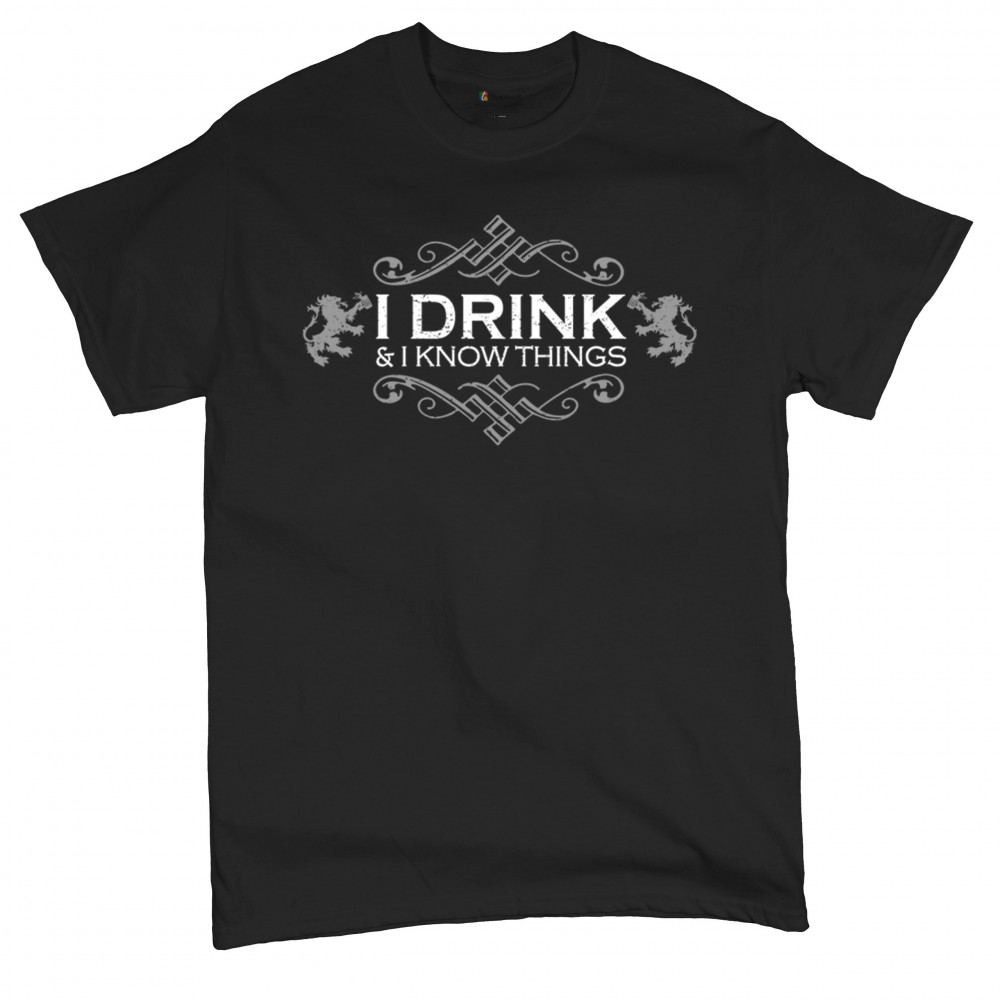 Show off your wit with the “I Drink and I Know Things” design, styled with medieval scrollwork and regal lions. Whether you're holding a pint at the bar, leading trivia night, or binge-watching fantasy series, this bold and funny piece is made for those who love drinking, sarcasm, and clever quotes with timeless flair.