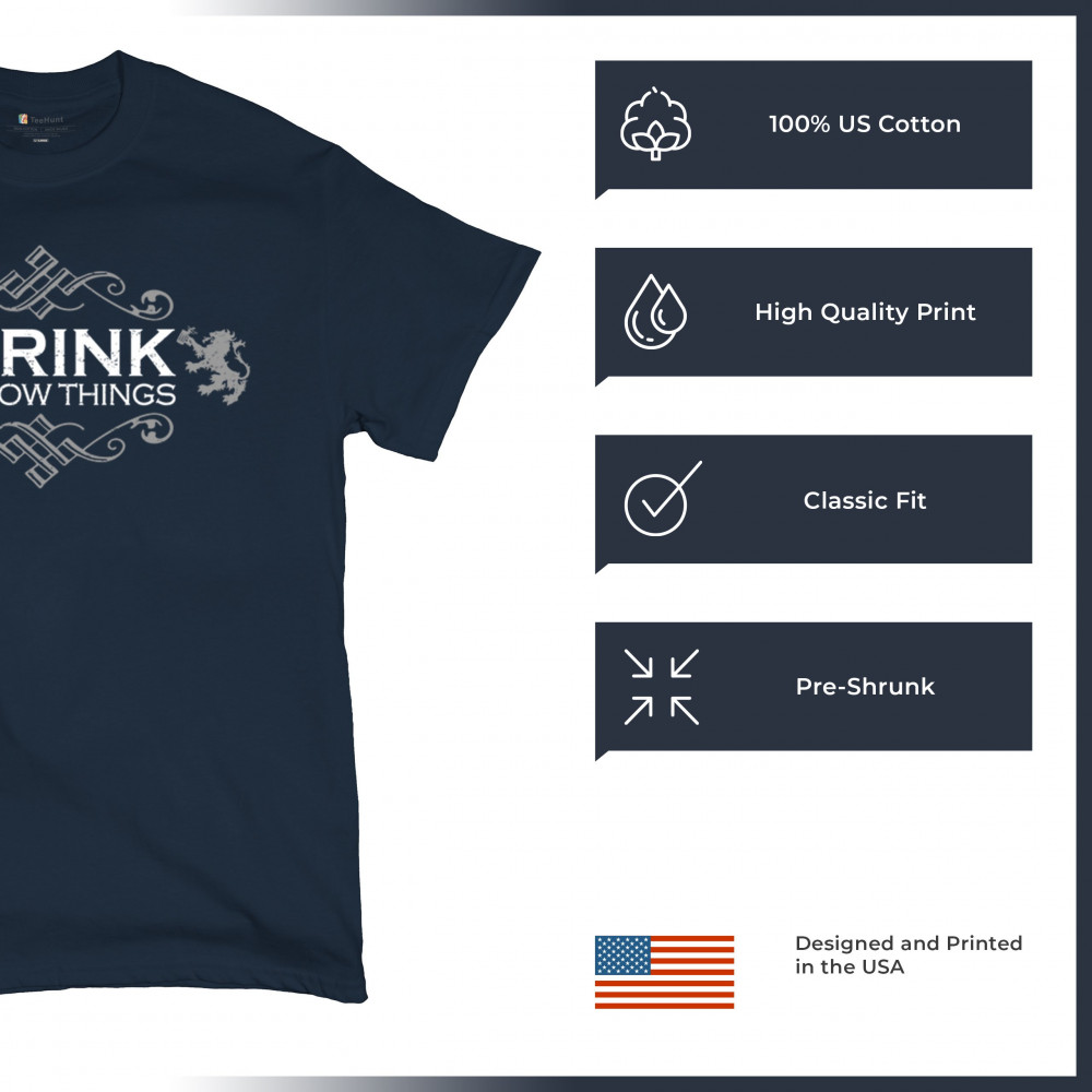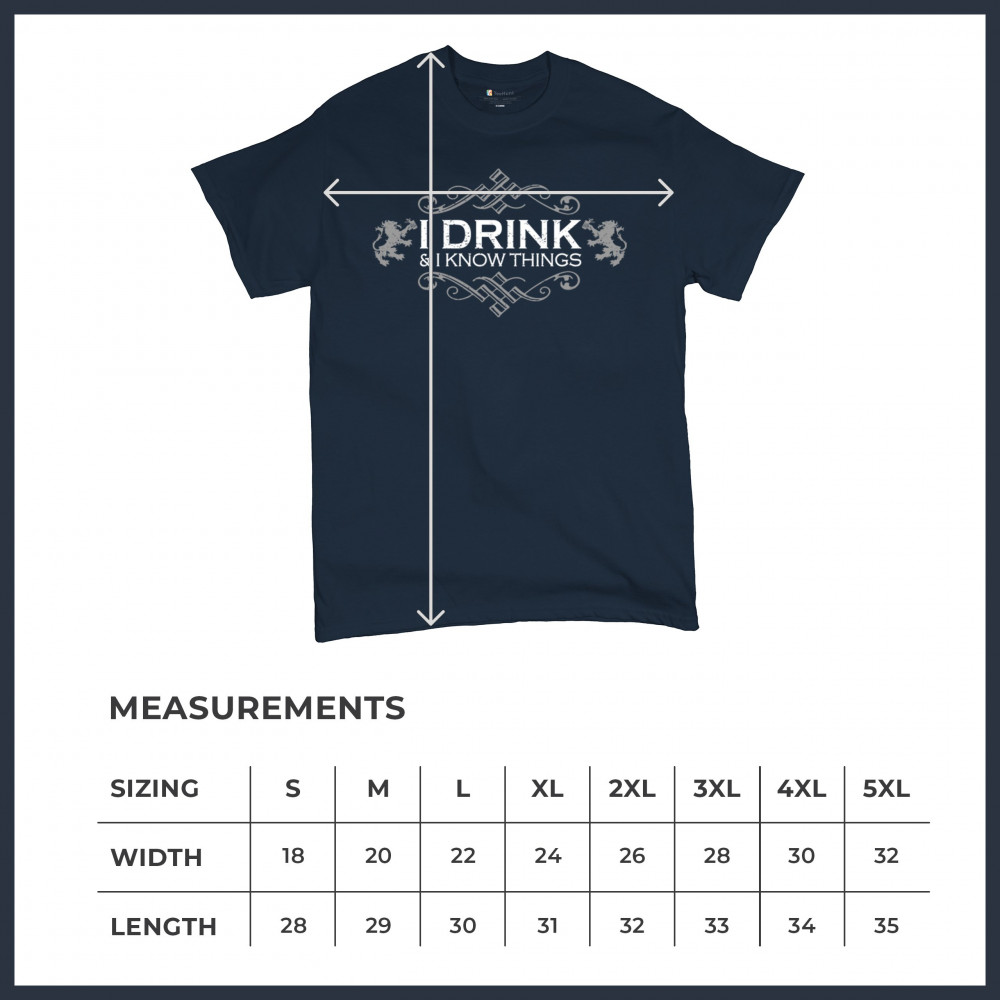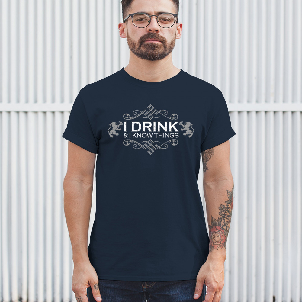 Show off your wit with the “I Drink and I Know Things†design, styled with medieval scrollwork and regal lions. Whether you're holding a pint at the bar, leading trivia night, or binge-watching fantasy series, this bold and funny piece is made for those who love drinking, sarcasm, and clever quotes with timeless flair.