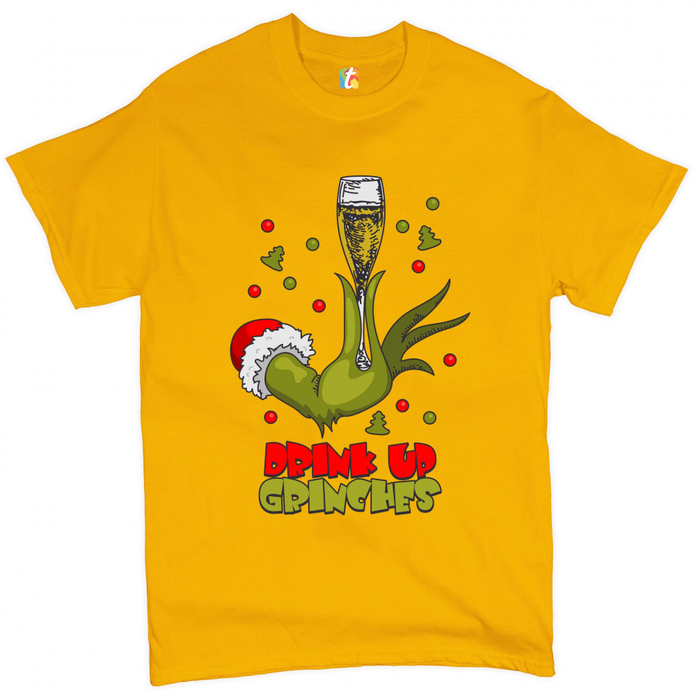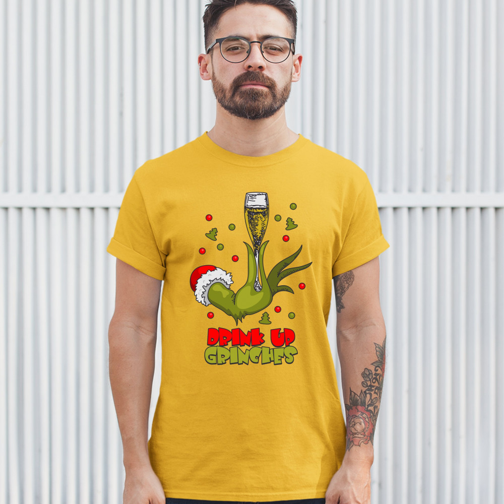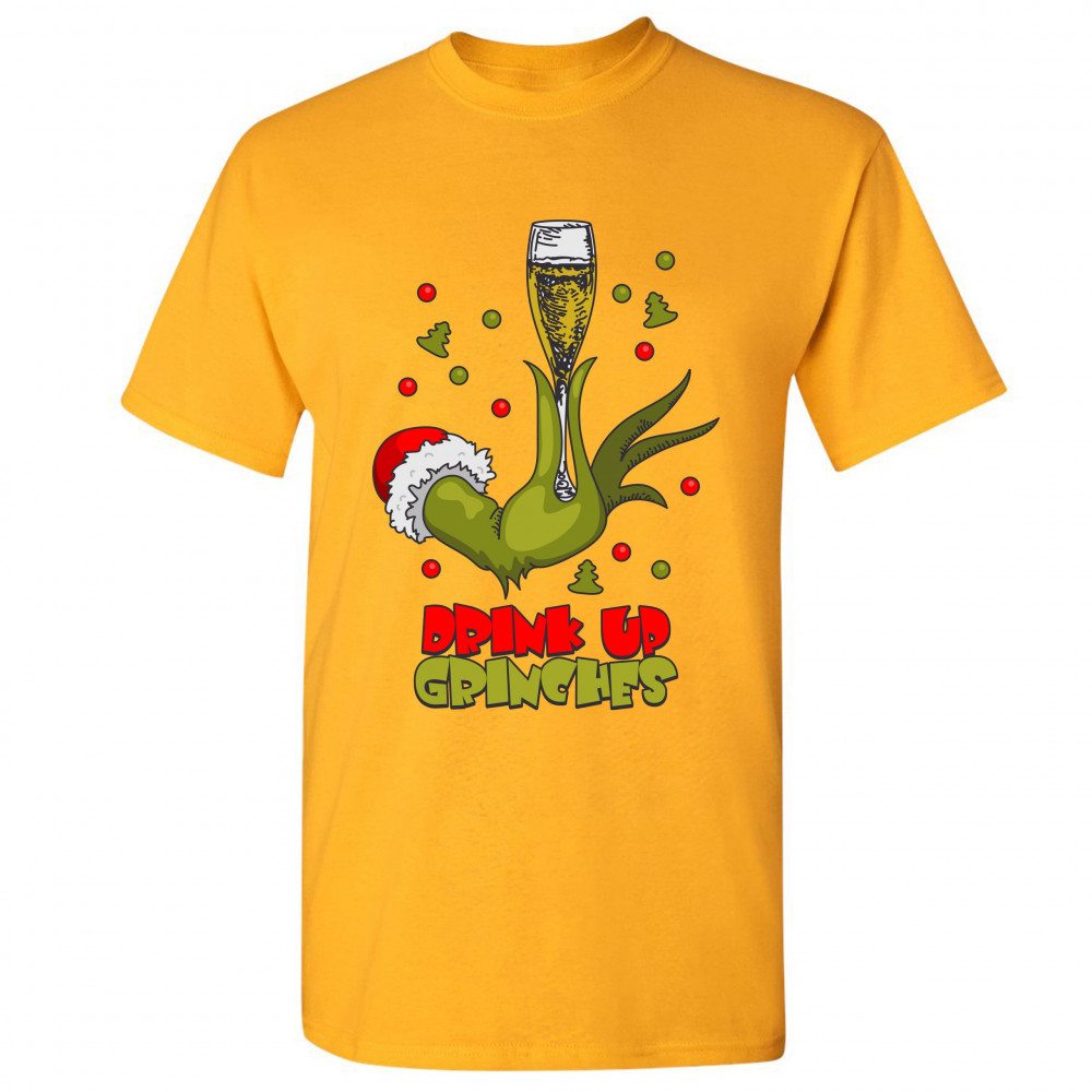 DRINK UP GRINCHES t-shirt funny christmas drinking men's tee yellow