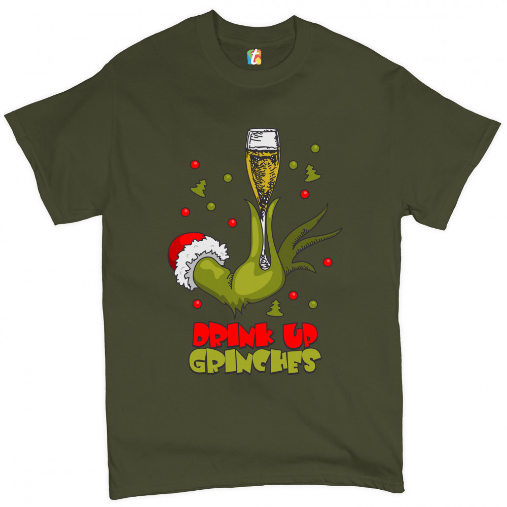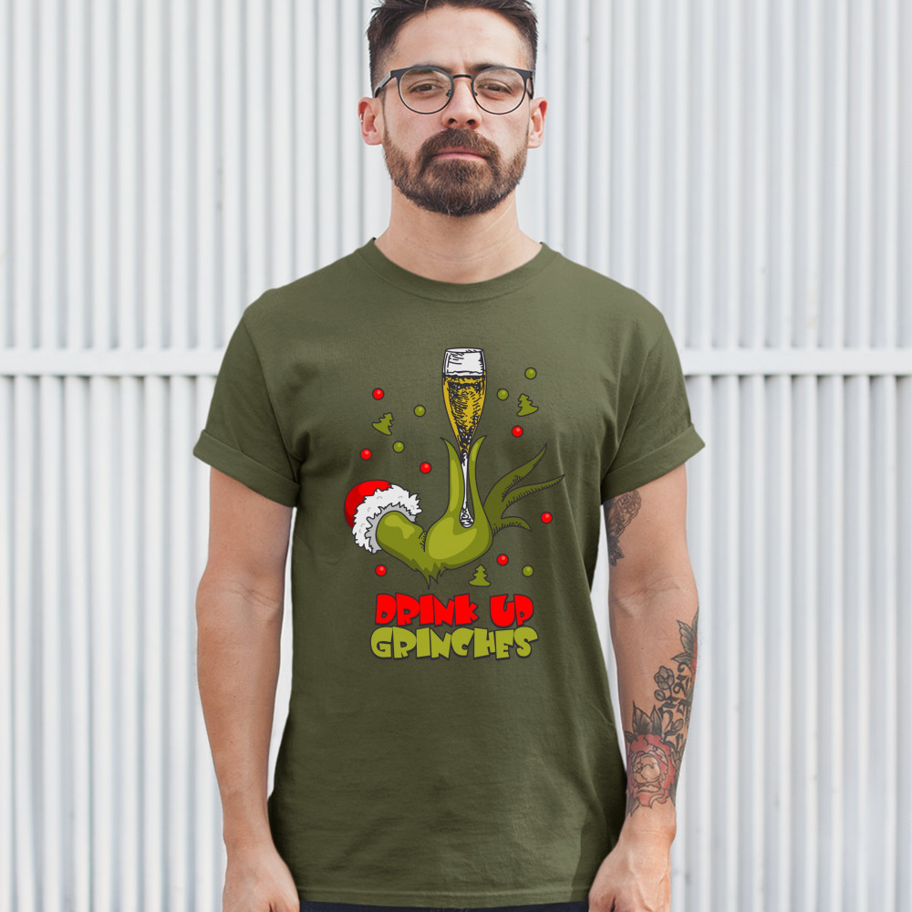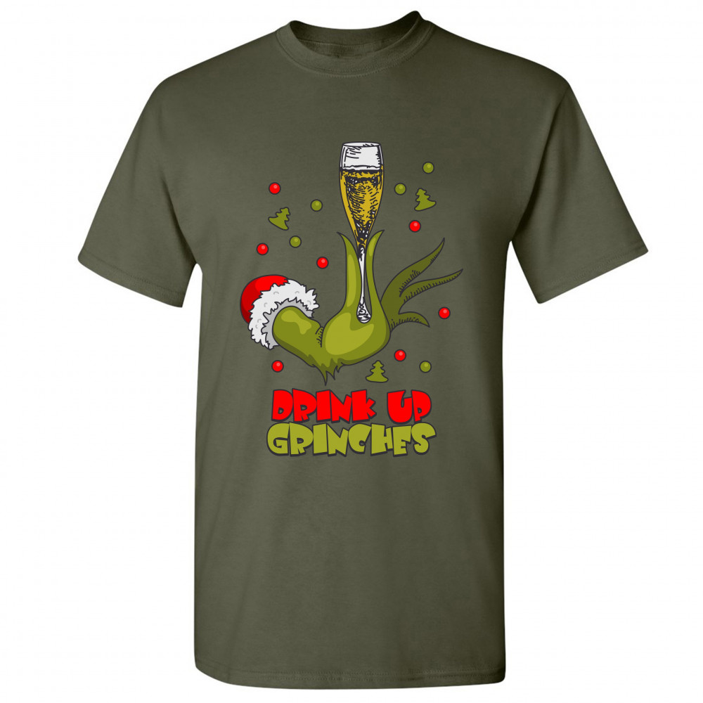 DRINK UP GRINCHES t-shirt funny christmas drinking men's tee military green