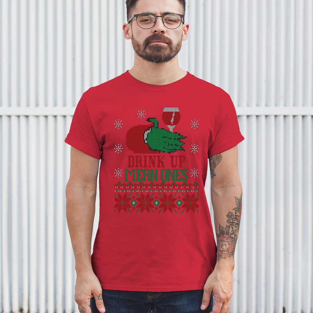Get festive with this funny Christmas drinking sweater design, perfect for holiday parties, ugly sweater contests, and wine lovers. Cheers to the season!