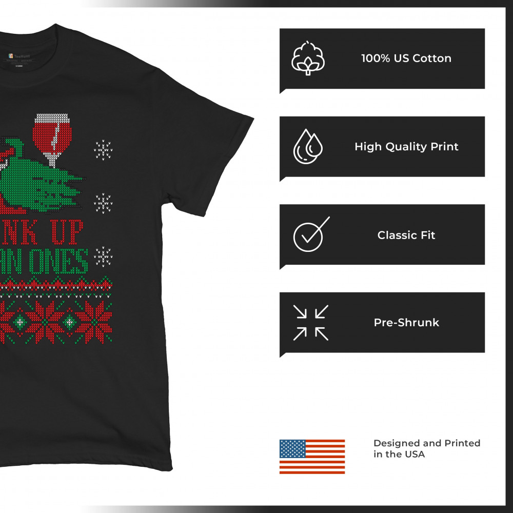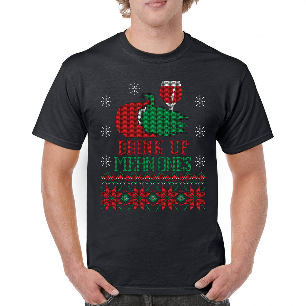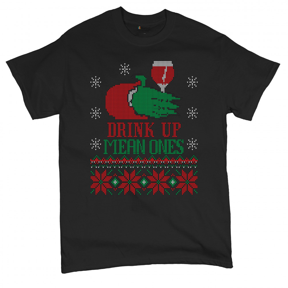 DRINK UP SCROOGES t-shirt funny wine christmas ugly sweater party men's tee black
