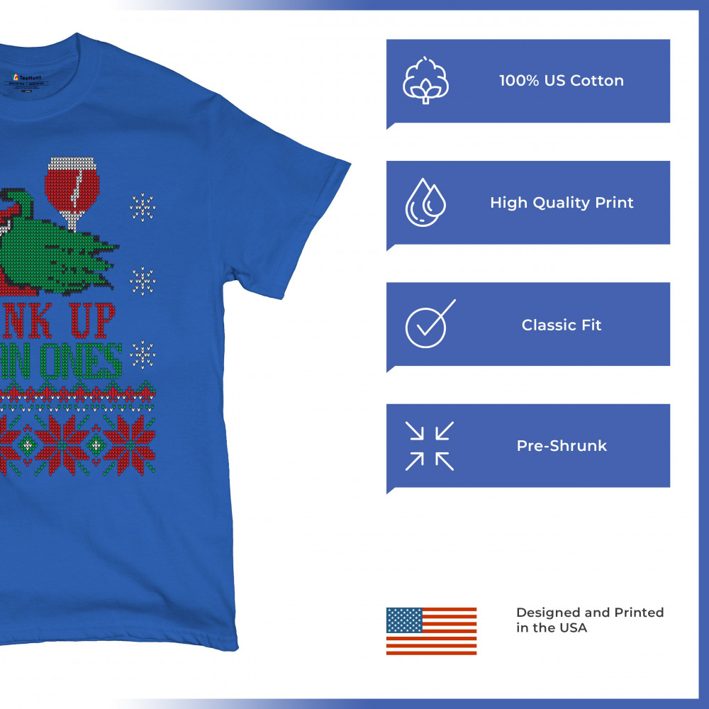 This ugly Christmas sweater design is a hilarious must-have for holiday parties, festive drinking nights, and Christmas sweater contests. Designed for wine lovers, cocktail enthusiasts, and holiday humor fans, it features a knit-style festive pattern that’s perfect for cheerful toasts and holiday shenanigans. Whether you're sipping eggnog or enjoying mulled wine, this is the ultimate Christmas drinking shirt.