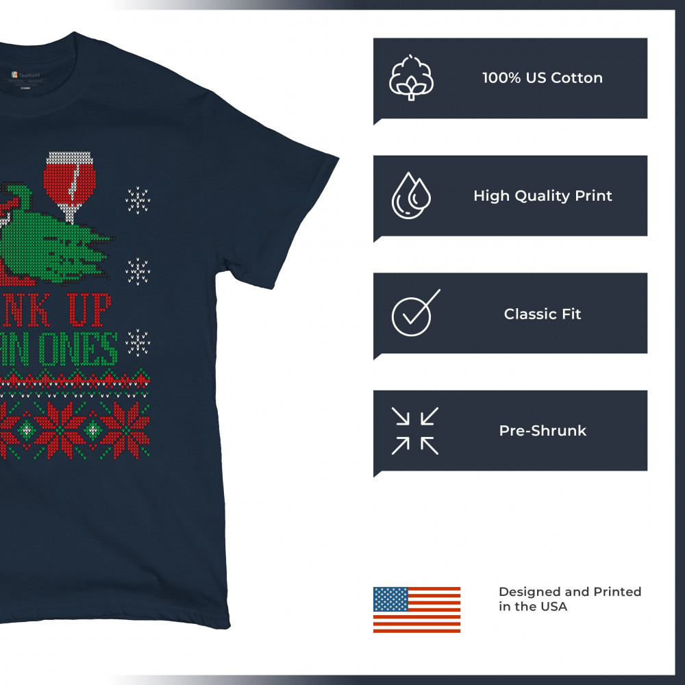 This ugly Christmas sweater design is a hilarious must-have for holiday parties, festive drinking nights, and Christmas sweater contests. Designed for wine lovers, cocktail enthusiasts, and holiday humor fans, it features a knit-style festive pattern that’s perfect for cheerful toasts and holiday shenanigans. Whether you're sipping eggnog or enjoying mulled wine, this is the ultimate Christmas drinking shirt.