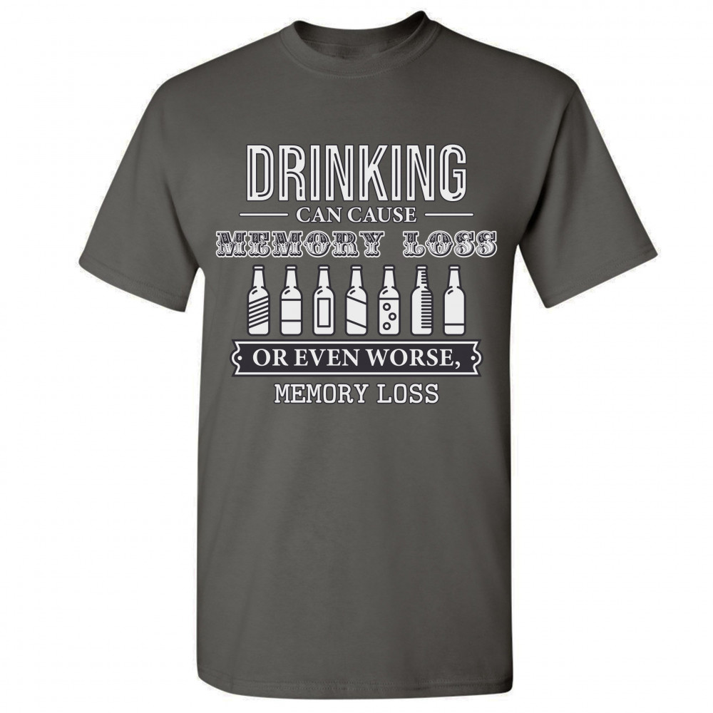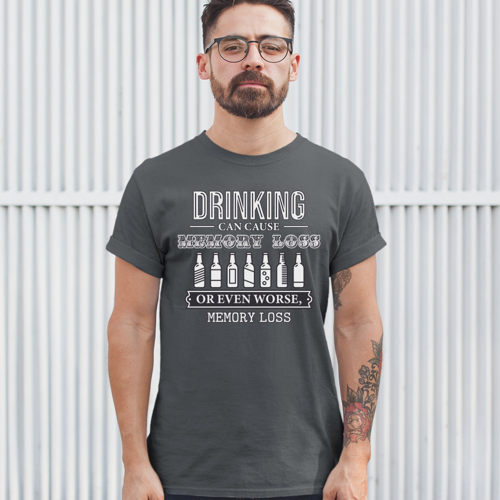 DRINKING CAN CAUSE MEMORY LOSS t-shirt alcohol beer inappropriate men's tee charcoal
