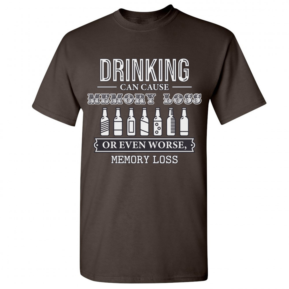 DRINKING CAN CAUSE MEMORY LOSS t-shirt alcohol beer inappropriate men's tee brown