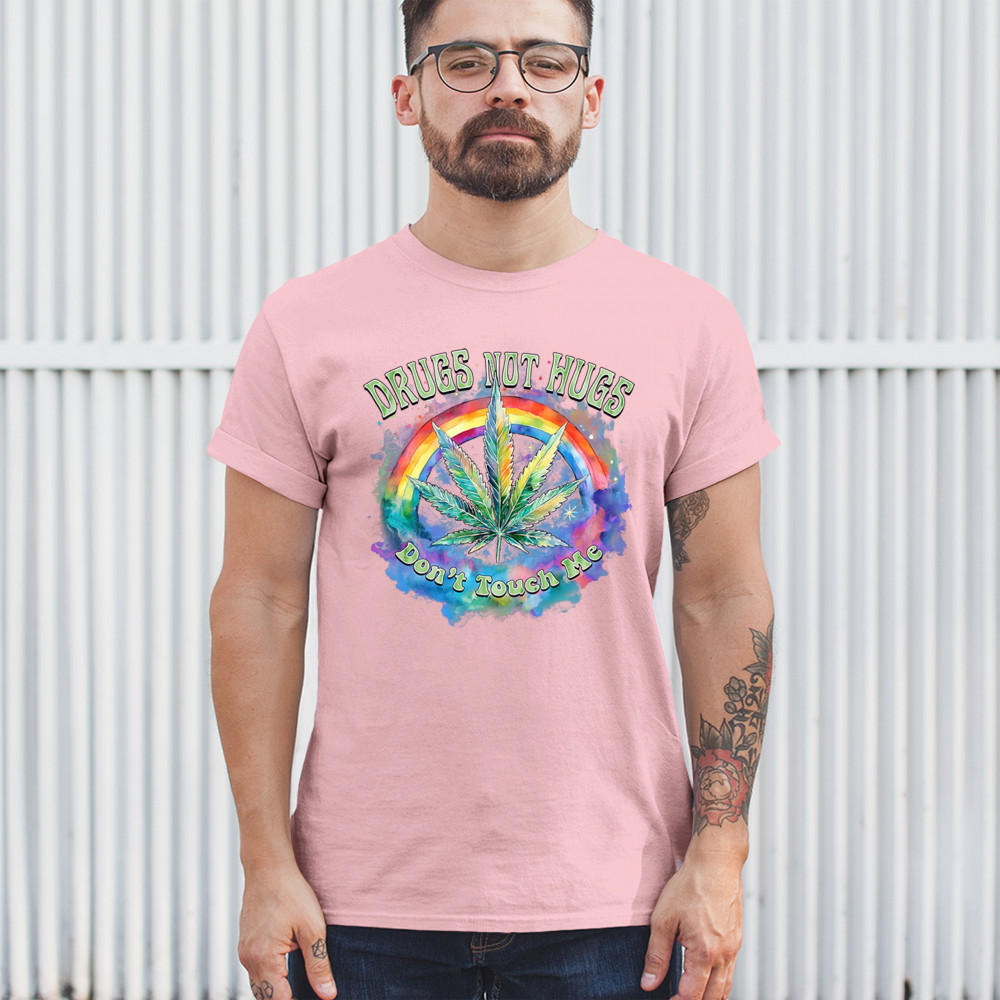 This bold marijuana leaf design blends psychedelic colors with a rainbow flair to create a loud, colorful statement. Great for weed lovers who value space, it's the perfect look for expressing antisocial vibes. Whether you're at festivals, smokeouts, or chilling solo, this cannabis design mixes humor, independence, and stoner culture with unapologetic style.