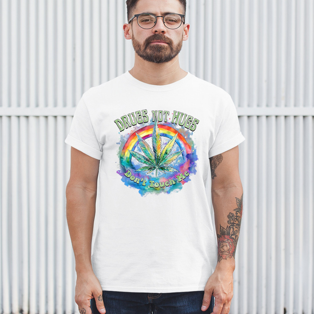 This bold marijuana leaf design blends psychedelic colors with a rainbow flair to create a loud, colorful statement. Great for weed lovers who value space, it's the perfect look for expressing antisocial vibes. Whether you're at festivals, smokeouts, or chilling solo, this cannabis design mixes humor, independence, and stoner culture with unapologetic style.