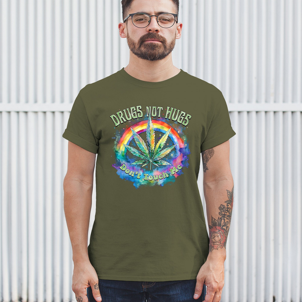 This bold marijuana leaf design blends psychedelic colors with a rainbow flair to create a loud, colorful statement. Great for weed lovers who value space, it's the perfect look for expressing antisocial vibes. Whether you're at festivals, smokeouts, or chilling solo, this cannabis design mixes humor, independence, and stoner culture with unapologetic style.