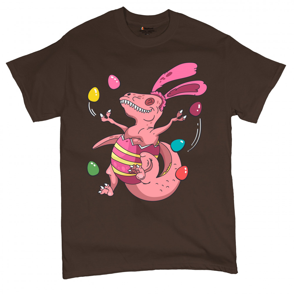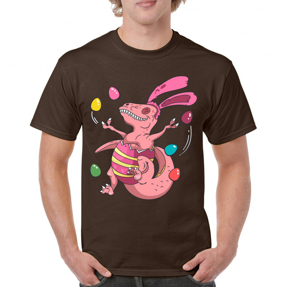 EASTER EGG T-REX t-shirt happy easter bunny dinosaur egg hunt men's tee brown