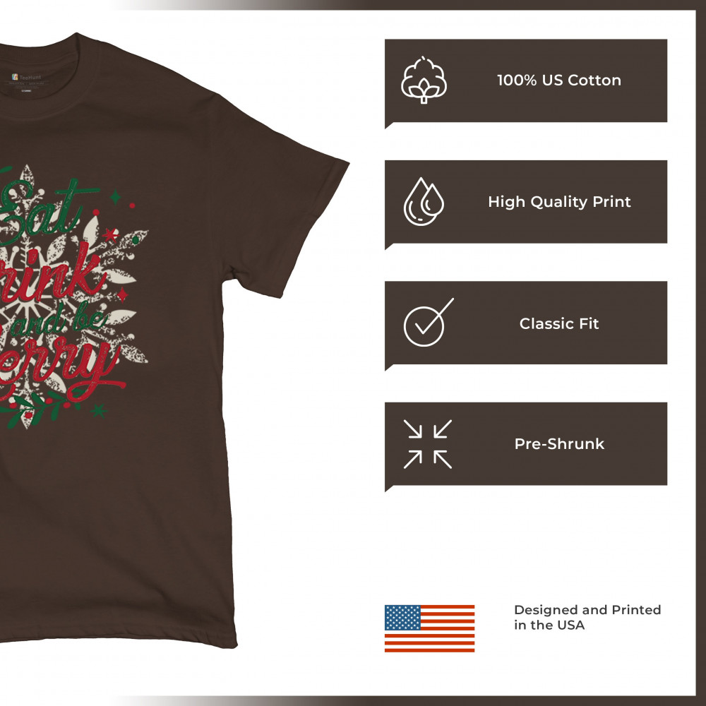 Bring the joy of the season with this "Eat, Drink, and Be Merry" design, crafted to make every holiday gathering a bit brighter. Ideal for cozy holiday mornings, family gatherings, Secret Santa gifts, or festive office parties, this piece captures the spirit of Christmas. Perfect for matching group sets or as a thoughtful holiday present, it’s designed in classic Christmas colors to complement the festive atmosphere. Let this design bring warmth and joy to your celebrations!