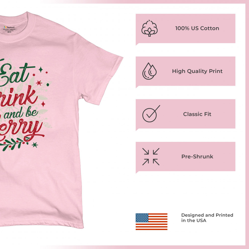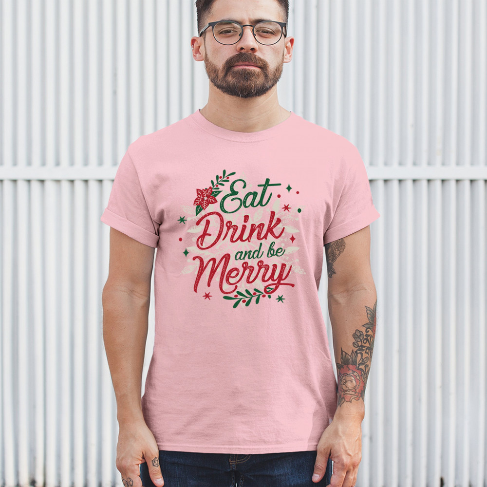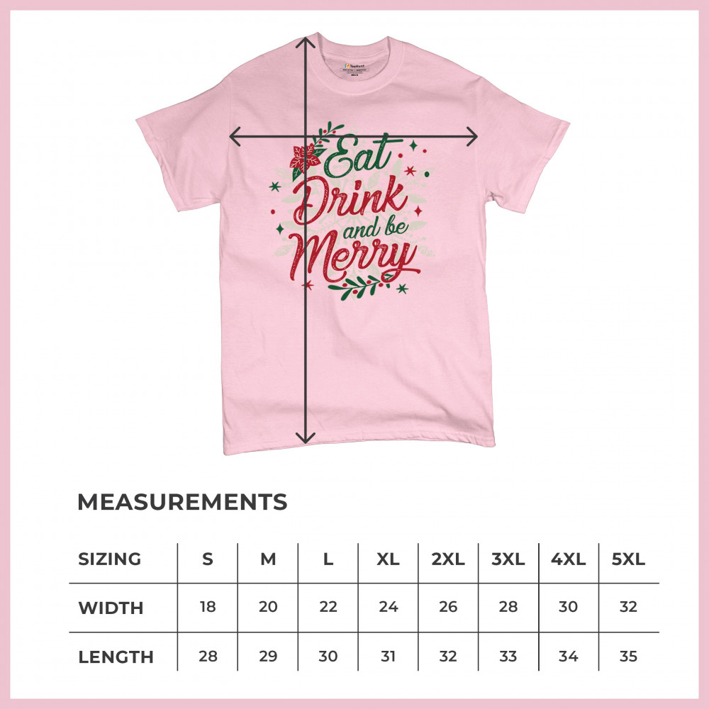 Bring the joy of the season with this "Eat, Drink, and Be Merry" design, crafted to make every holiday gathering a bit brighter. Ideal for cozy holiday mornings, family gatherings, Secret Santa gifts, or festive office parties, this piece captures the spirit of Christmas. Perfect for matching group sets or as a thoughtful holiday present, it’s designed in classic Christmas colors to complement the festive atmosphere. Let this design bring warmth and joy to your celebrations!