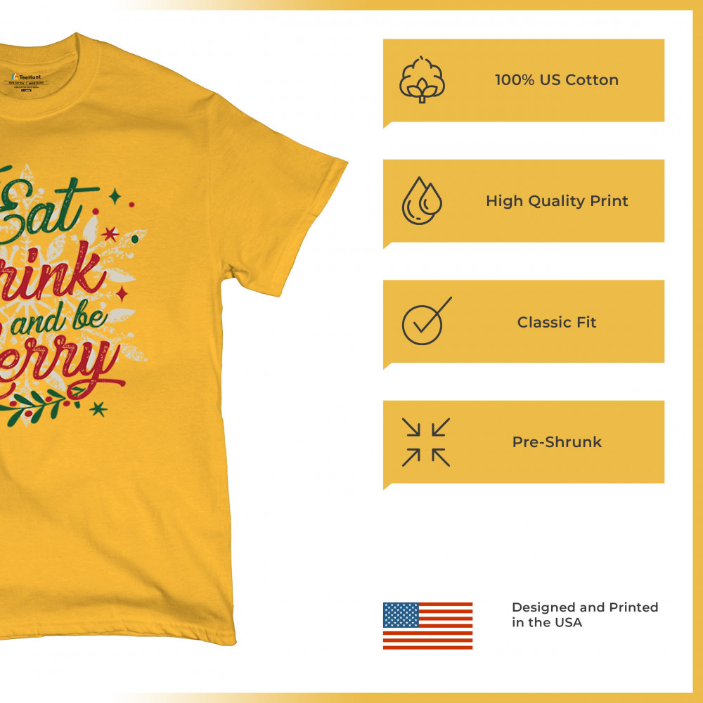 Bring the joy of the season with this "Eat, Drink, and Be Merry" design, crafted to make every holiday gathering a bit brighter. Ideal for cozy holiday mornings, family gatherings, Secret Santa gifts, or festive office parties, this piece captures the spirit of Christmas. Perfect for matching group sets or as a thoughtful holiday present, it’s designed in classic Christmas colors to complement the festive atmosphere. Let this design bring warmth and joy to your celebrations!