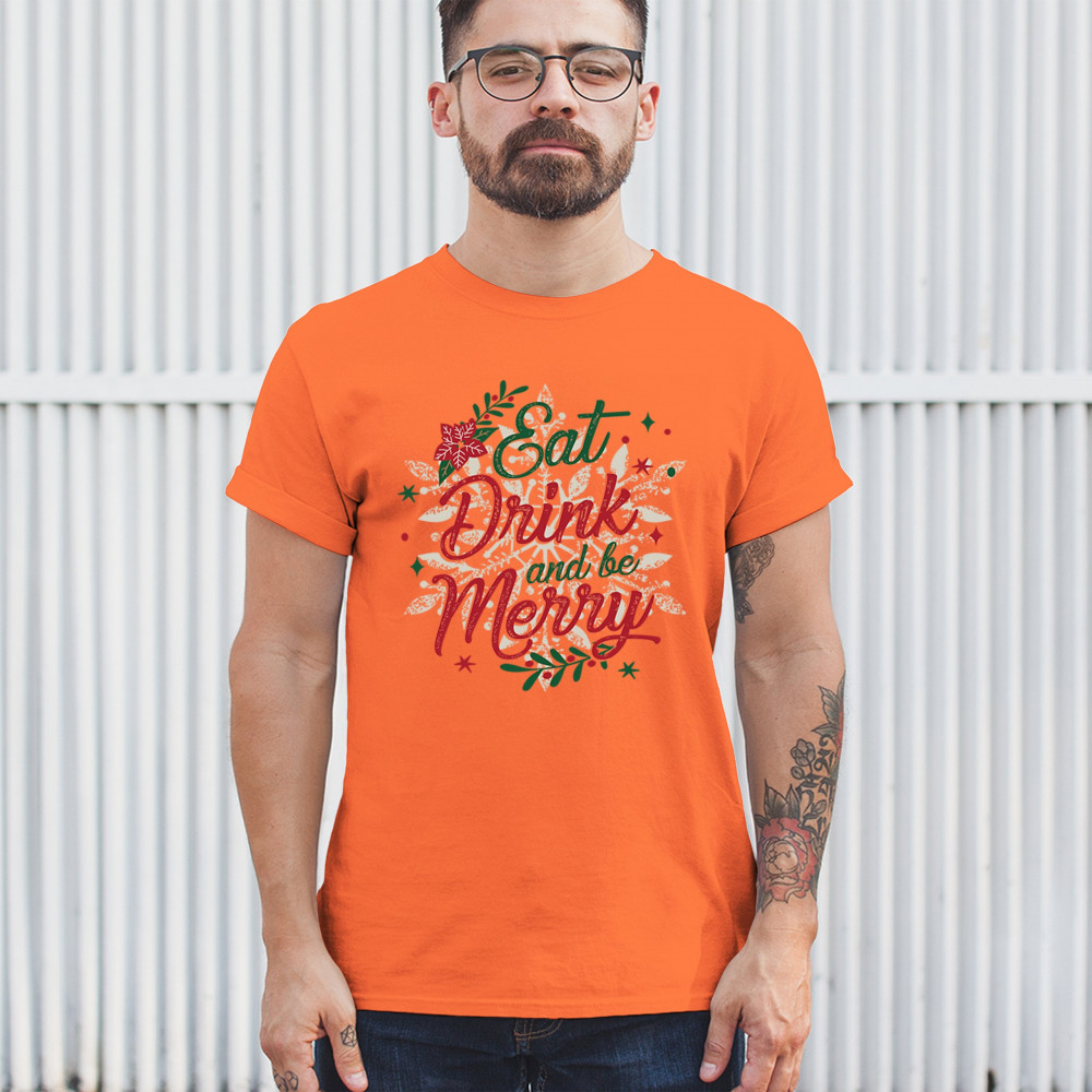 Bring the joy of the season with this "Eat, Drink, and Be Merry" design, crafted to make every holiday gathering a bit brighter. Ideal for cozy holiday mornings, family gatherings, Secret Santa gifts, or festive office parties, this piece captures the spirit of Christmas. Perfect for matching group sets or as a thoughtful holiday present, it’s designed in classic Christmas colors to complement the festive atmosphere. Let this design bring warmth and joy to your celebrations!
