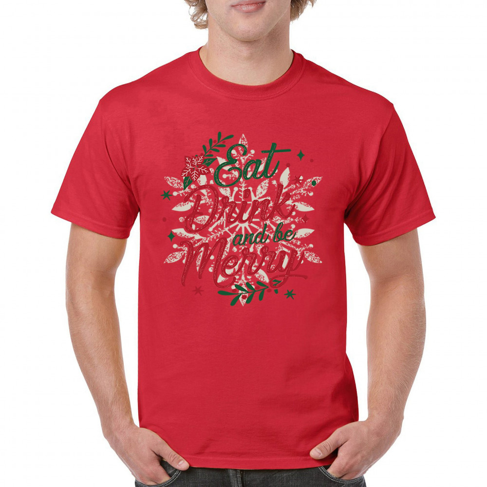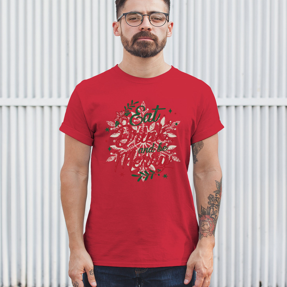 Bring the joy of the season with this "Eat, Drink, and Be Merry" design, crafted to make every holiday gathering a bit brighter. Ideal for cozy holiday mornings, family gatherings, Secret Santa gifts, or festive office parties, this piece captures the spirit of Christmas. Perfect for matching group sets or as a thoughtful holiday present, it’s designed in classic Christmas colors to complement the festive atmosphere. Let this design bring warmth and joy to your celebrations!