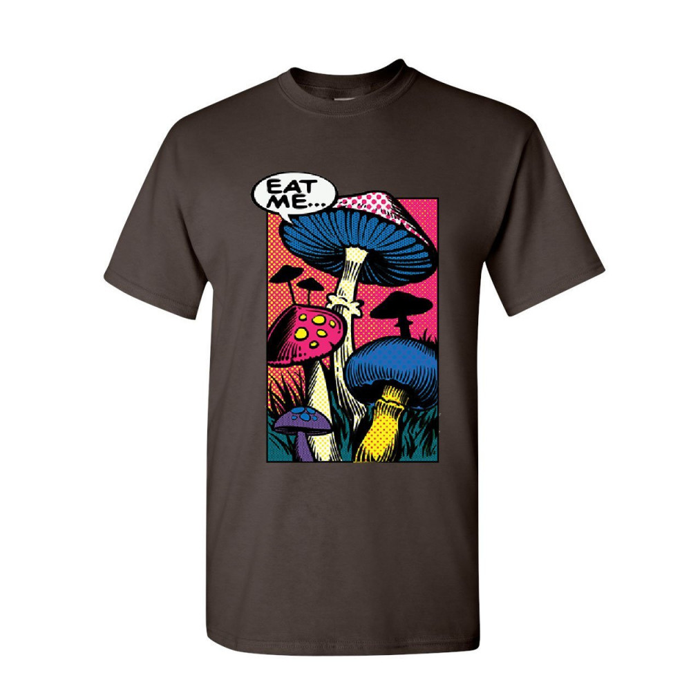 EAT ME... eat me t-shirt shroom mushroom fungi psychedelic hallucinations mens tee shirt brown