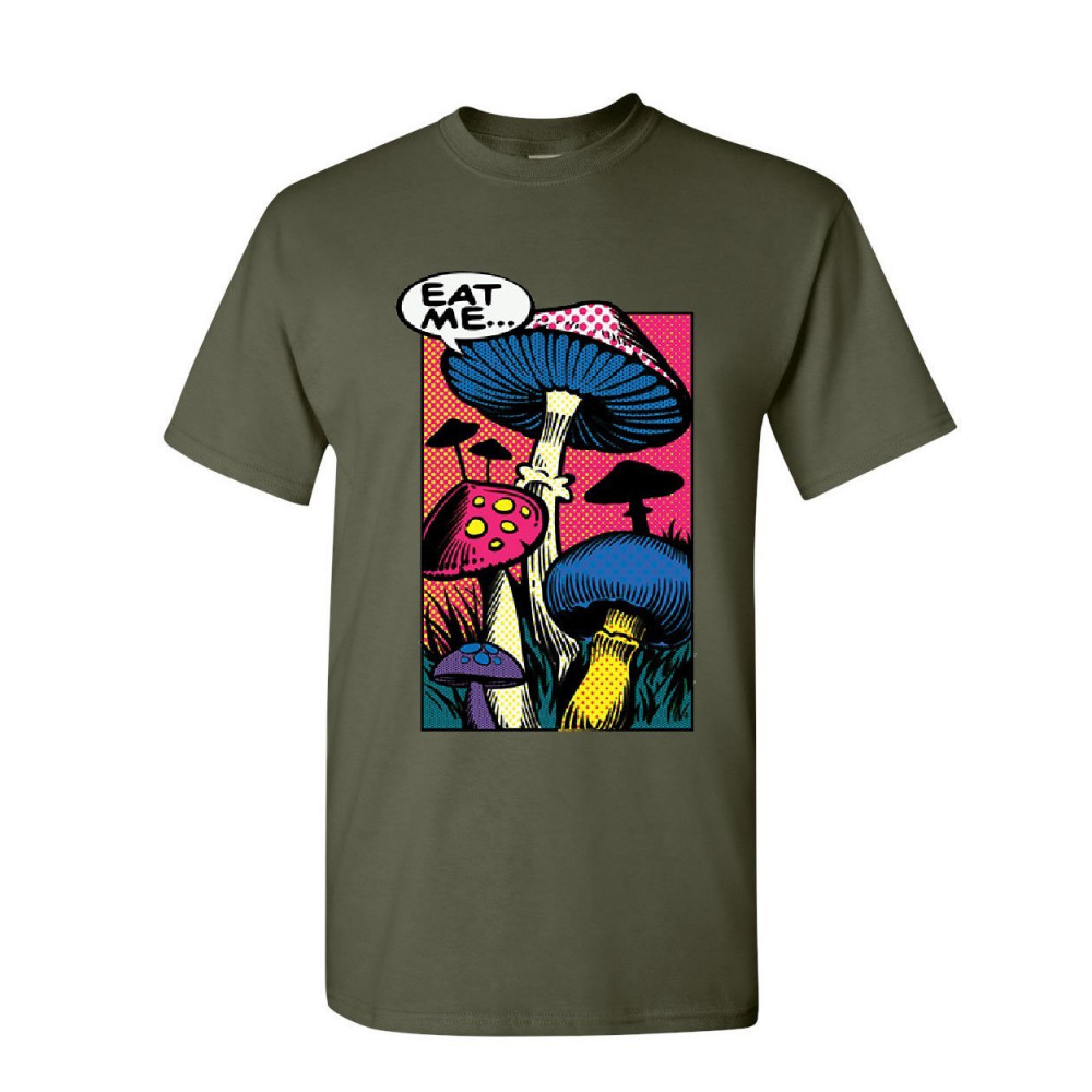 EAT ME... eat me t-shirt shroom mushroom fungi psychedelic hallucinations mens tee shirt military green