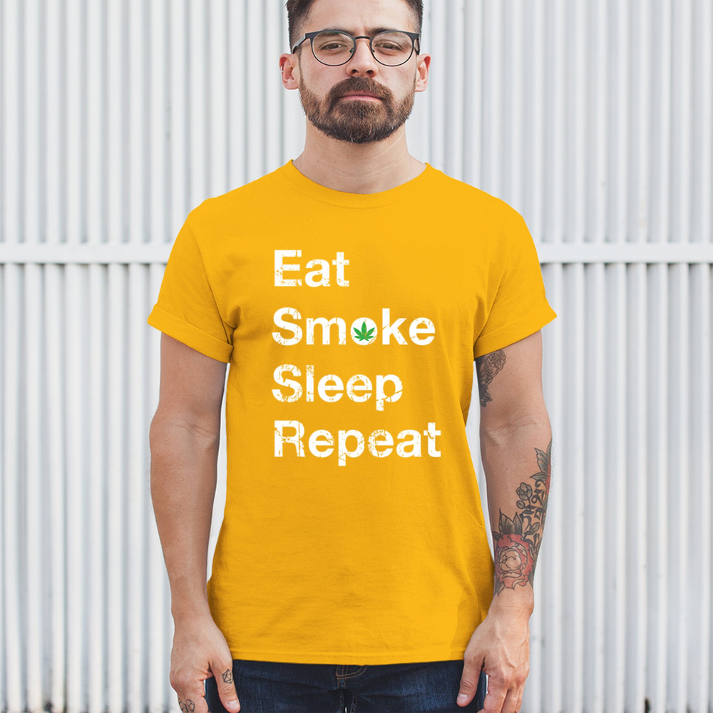 Eat Smoke Sleep Repeat design with weed leaf humor. Great for 420 fans, stoners, sesh lovers, smokers, and relaxed cannabis vibes.