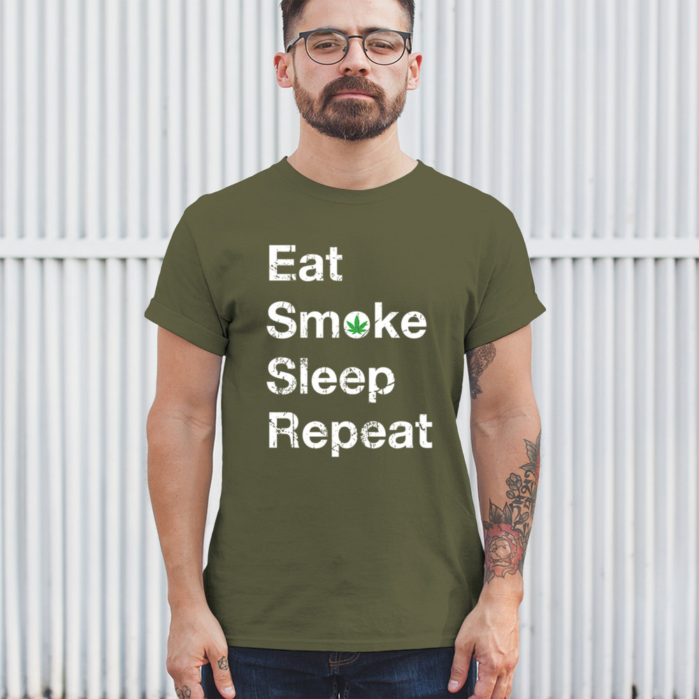 Eat Smoke Sleep Repeat design with weed leaf humor. Great for 420 fans, stoners, sesh lovers, smokers, and relaxed cannabis vibes.